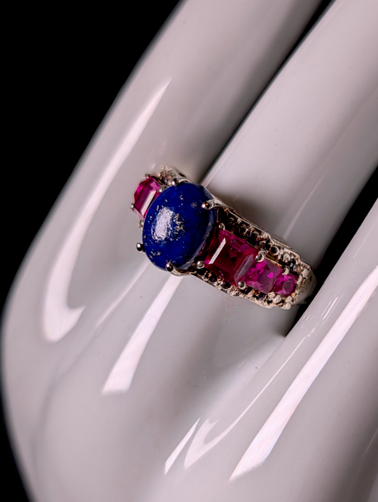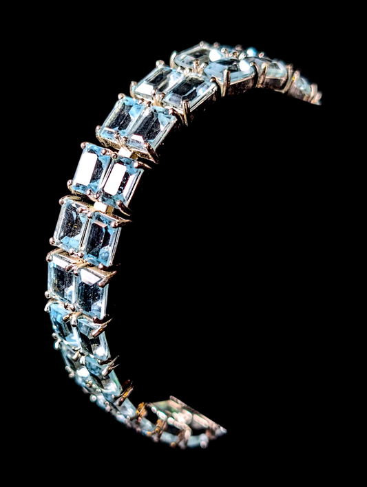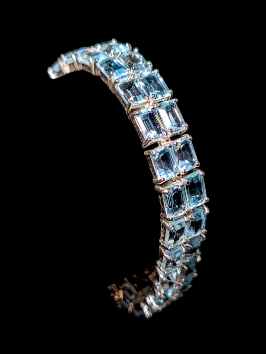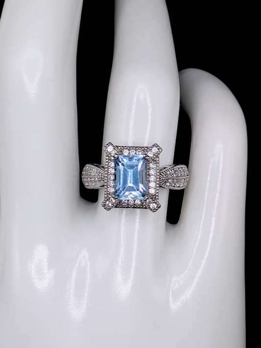 Vintage Dazzling Starburst Snowflake Genuine Blue Apatite and Topaz Sterling Silver Statement Ring