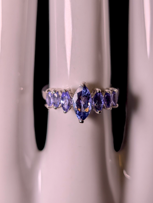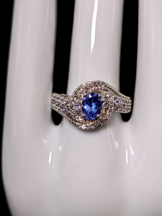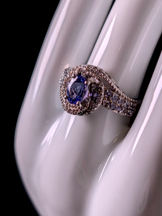 Vintage Full Eternity Band Oval Cut Earth Mined Genuine Tanzanite in Rich Violet Blue 5+ Carat Sterling Silver Ring
