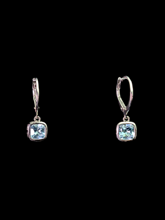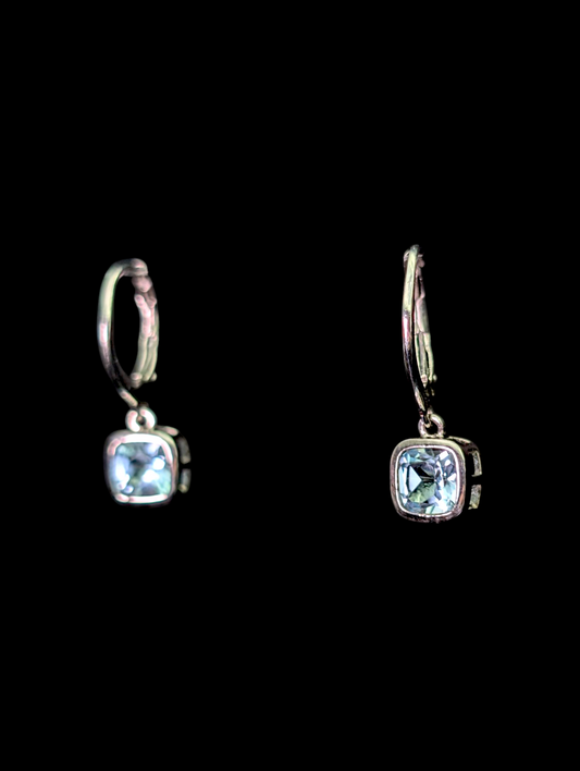 Vintage Oval Hoop Genuine Sky Blue Topaz Sterling Silver Earrings