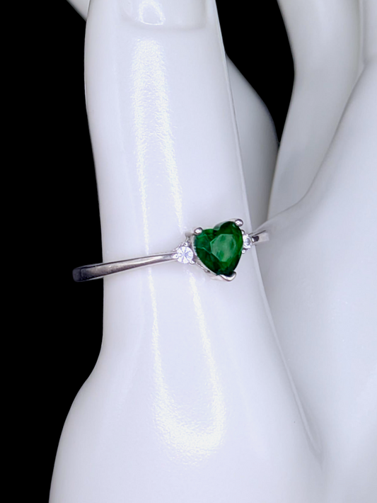 Vintage Oval Cut Earth Mined Genuine Emerald Solitaire Sterling Silver Ring