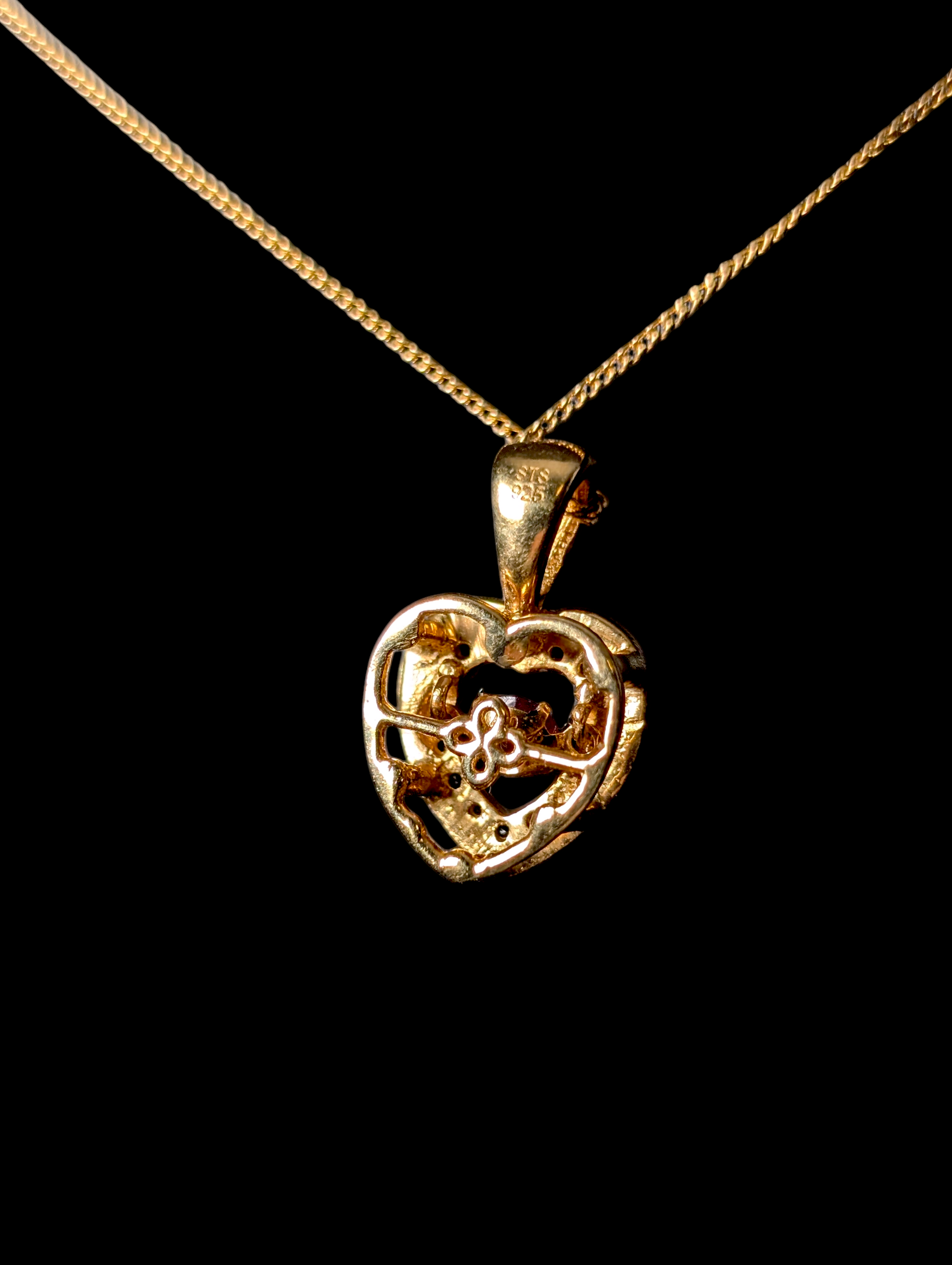 Vintage Genuine Ruby and White Topaz Halo Heart Pendant 14K Yellow Gold over Sterling Silver Delicate Chain Necklace