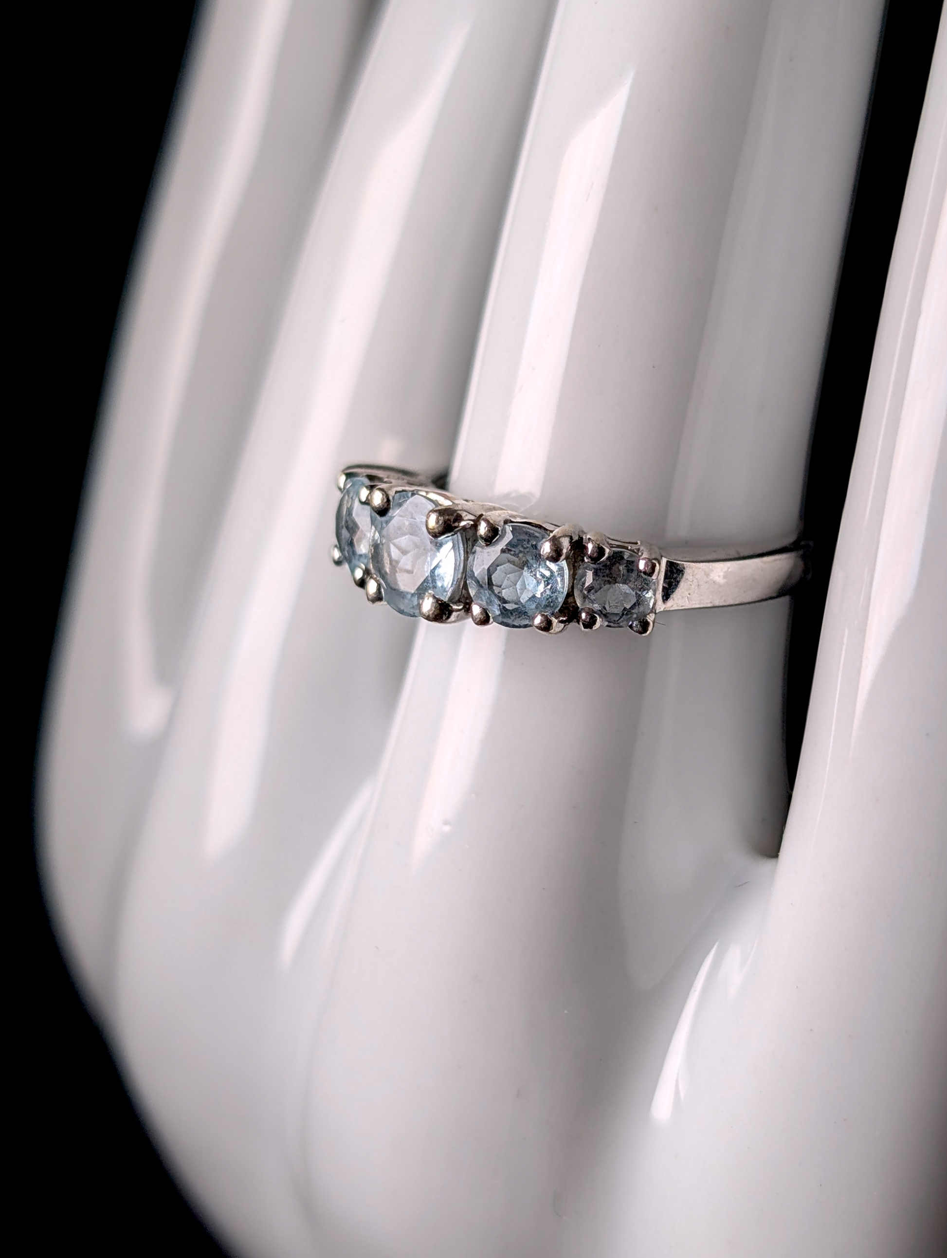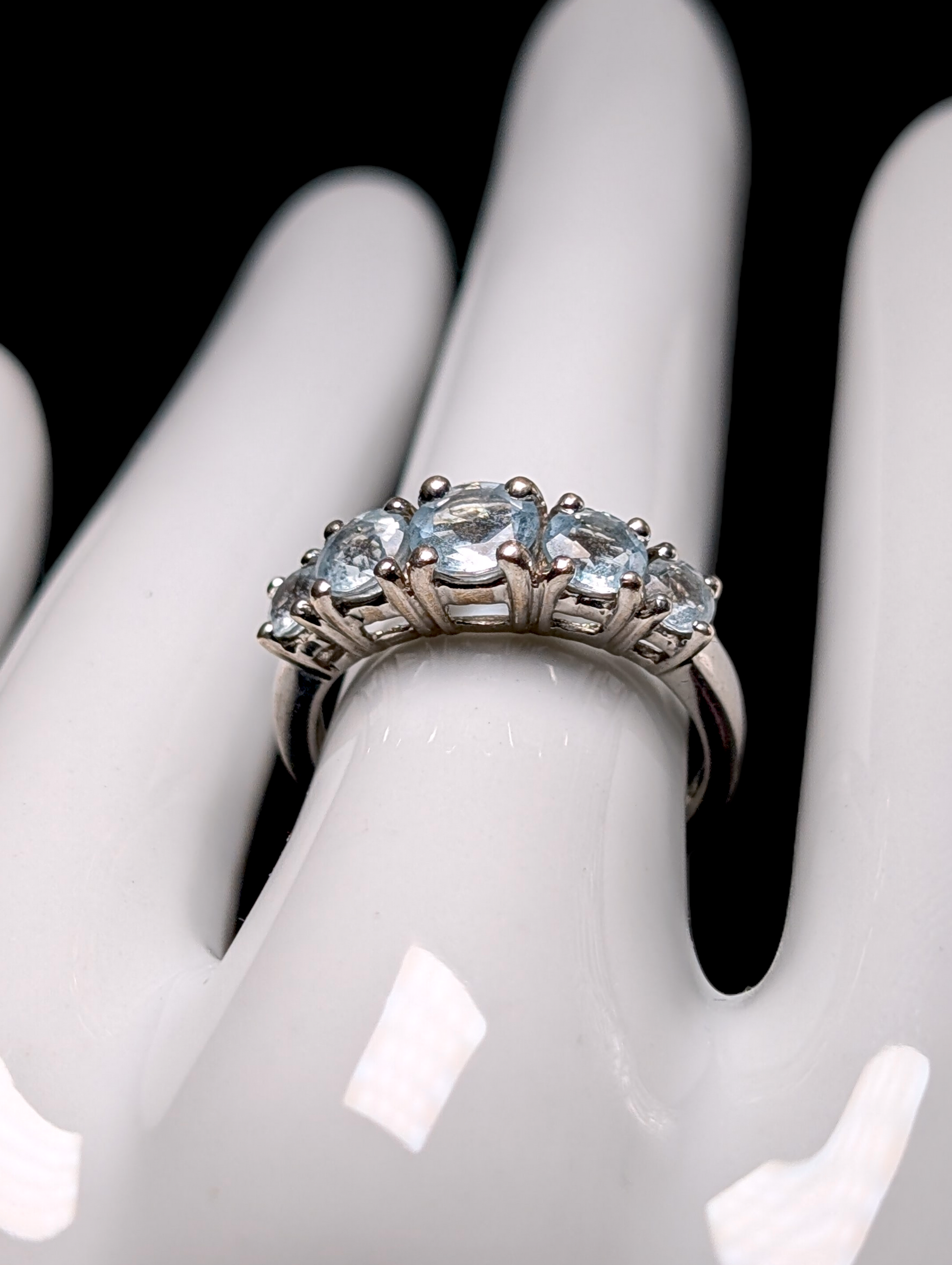 Vintage Graduating Round Cut Genuine Aquamarine Sterling Silver Band Ring