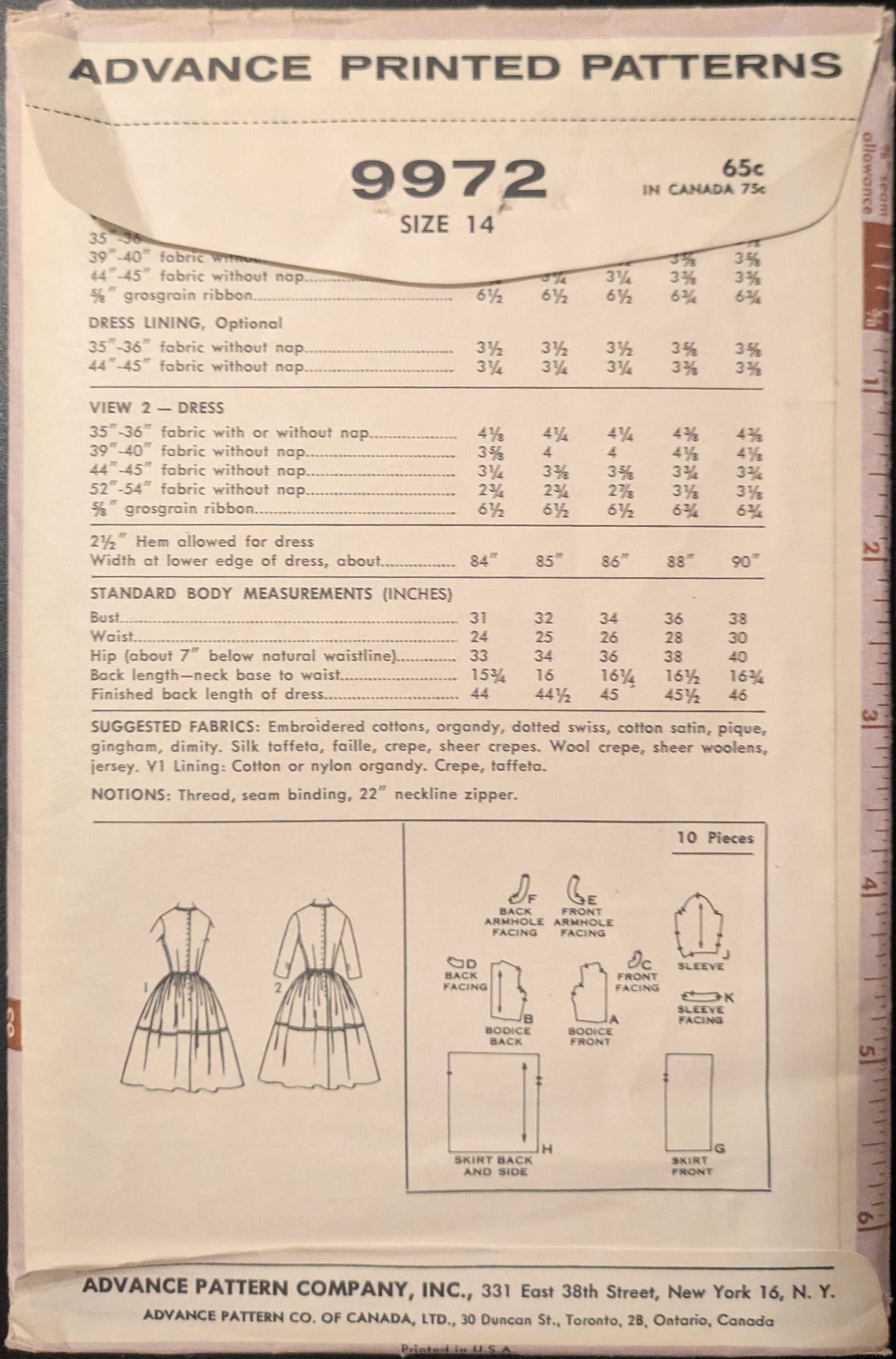 1950s Vintage Advance 9972 Sewing Pattern Size 14