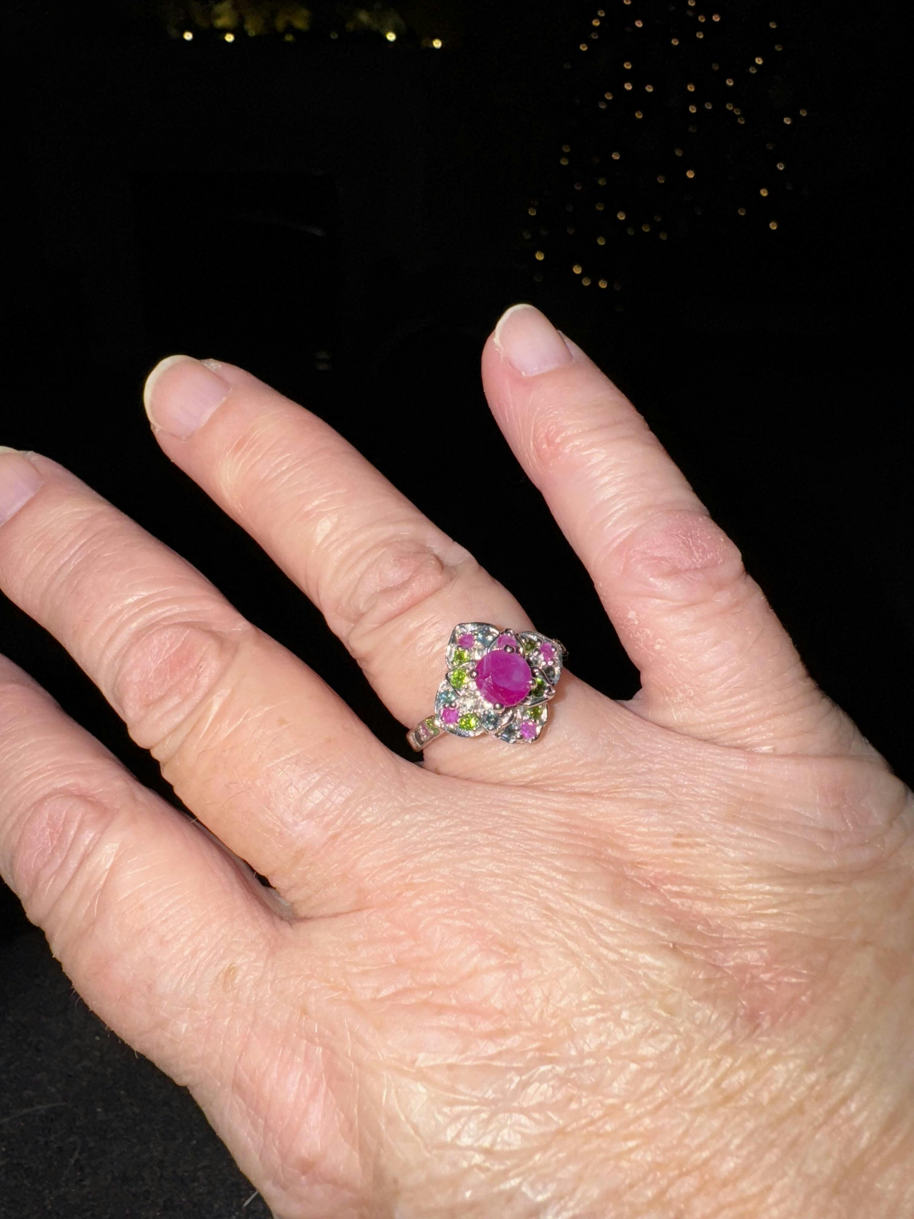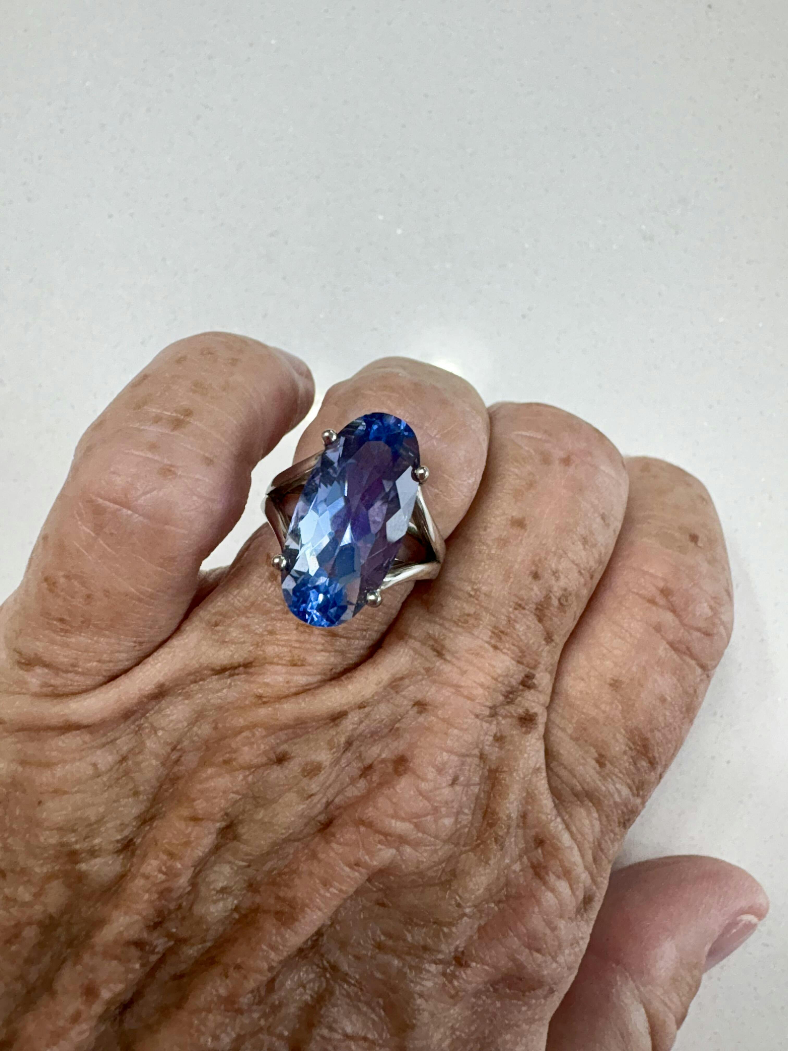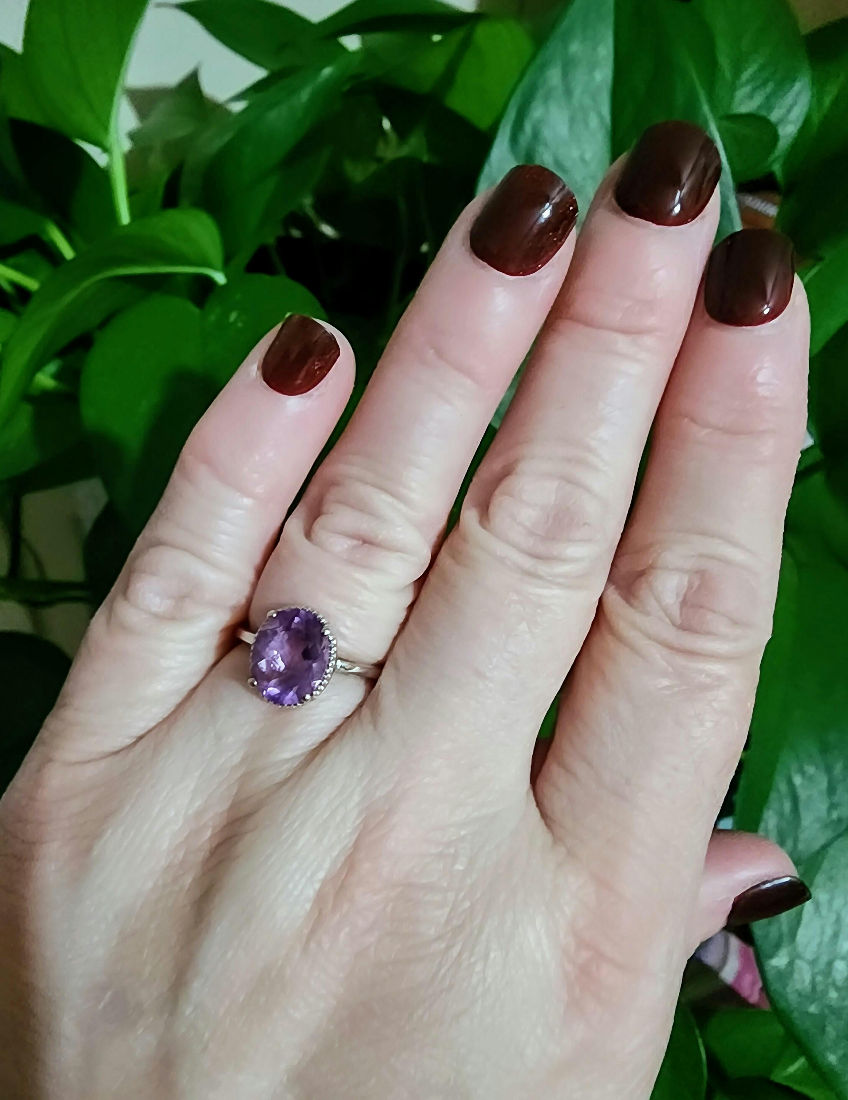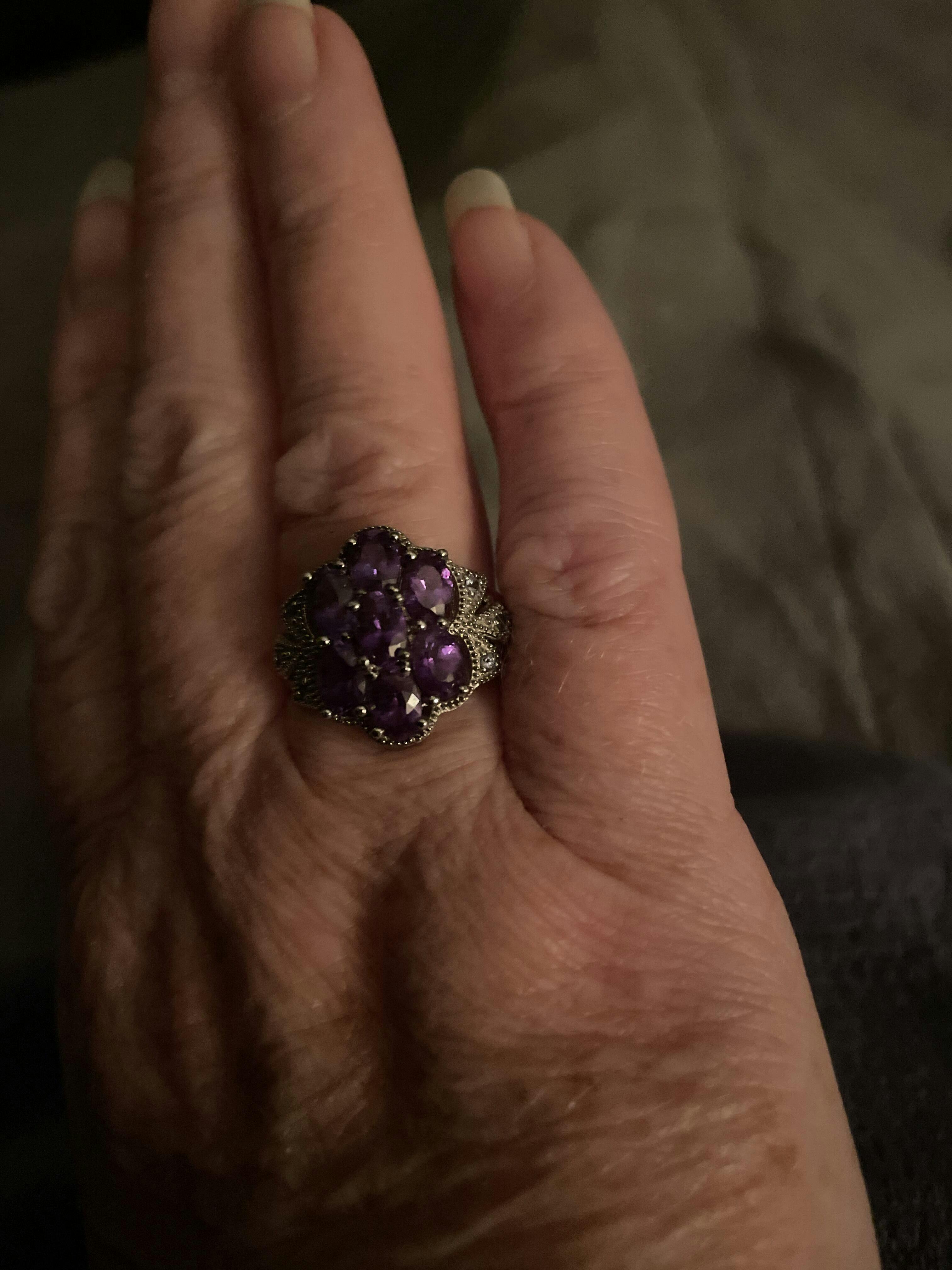 I absolutely love this ring. It’s my birth stone and have been wanting to treat myself with a great statement piece. Sometimes it’s looks blue and under different light it’s purple. I received it today and have had compliments on it already.