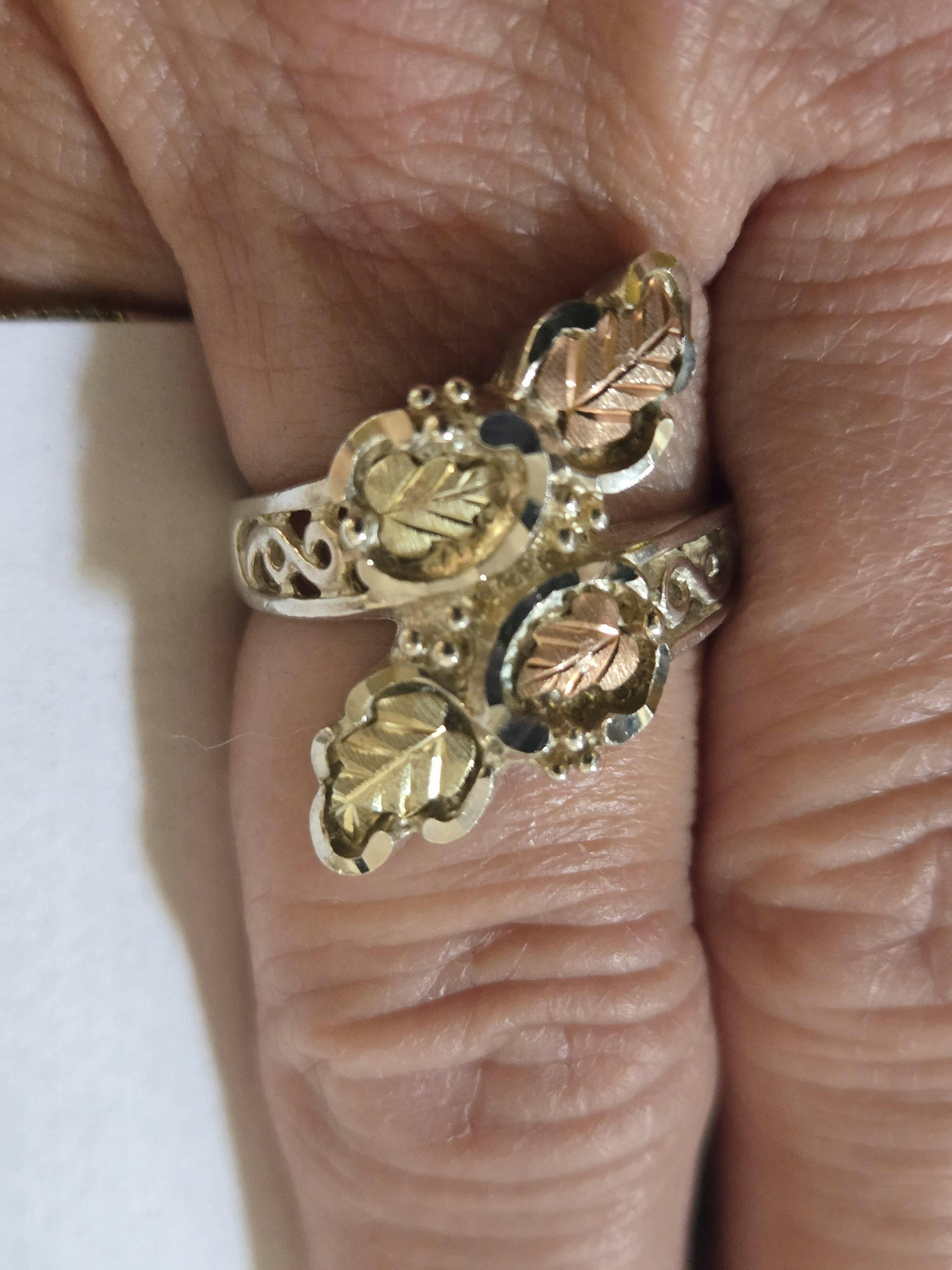 Vintage Black Hills Gold Carved 12K Gold and Sterling Silver Wrap Ring