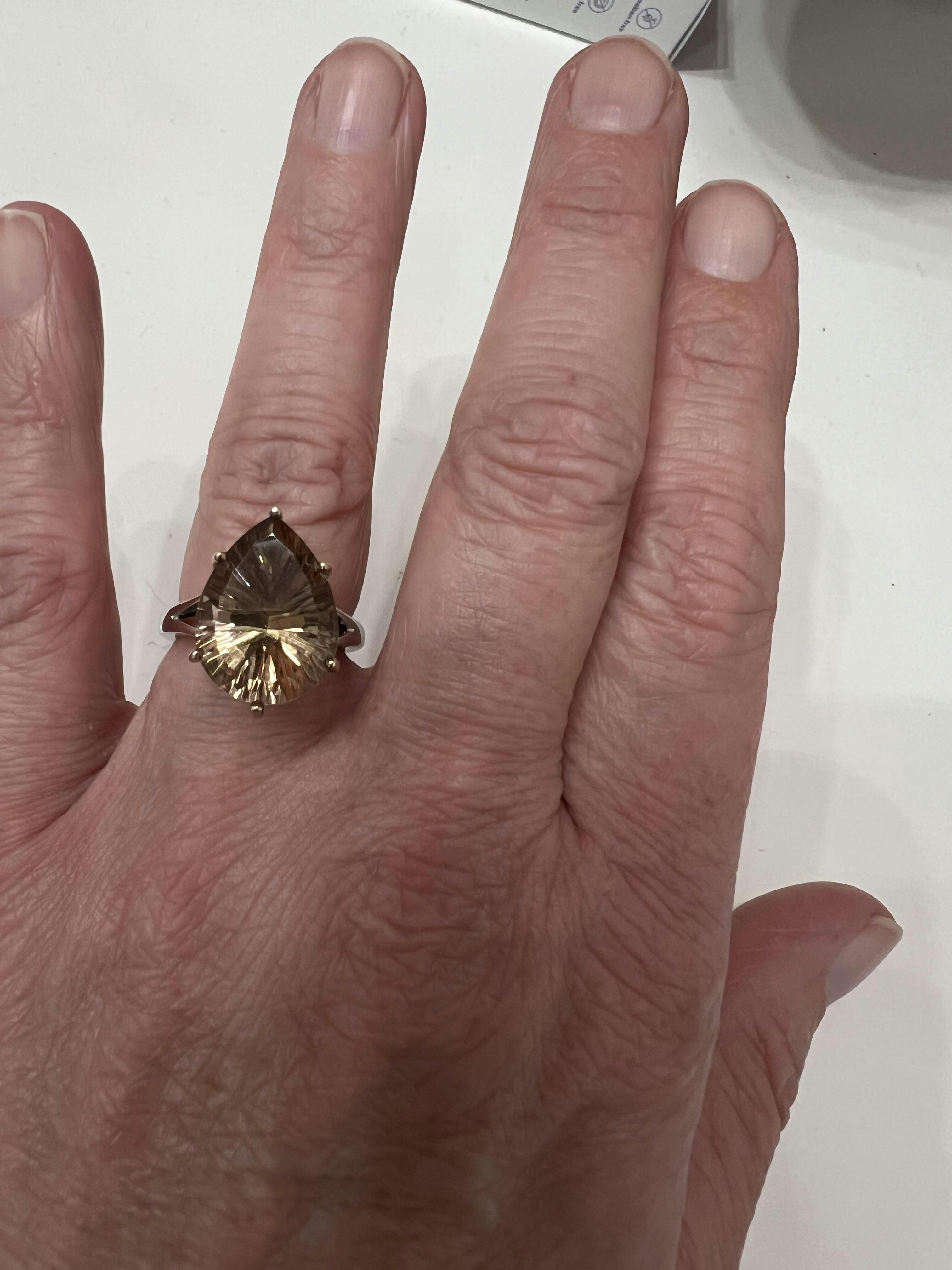 Vintage Large Pear Cut Genuine Champagne Quartz Sterling Silver Statement Ring
