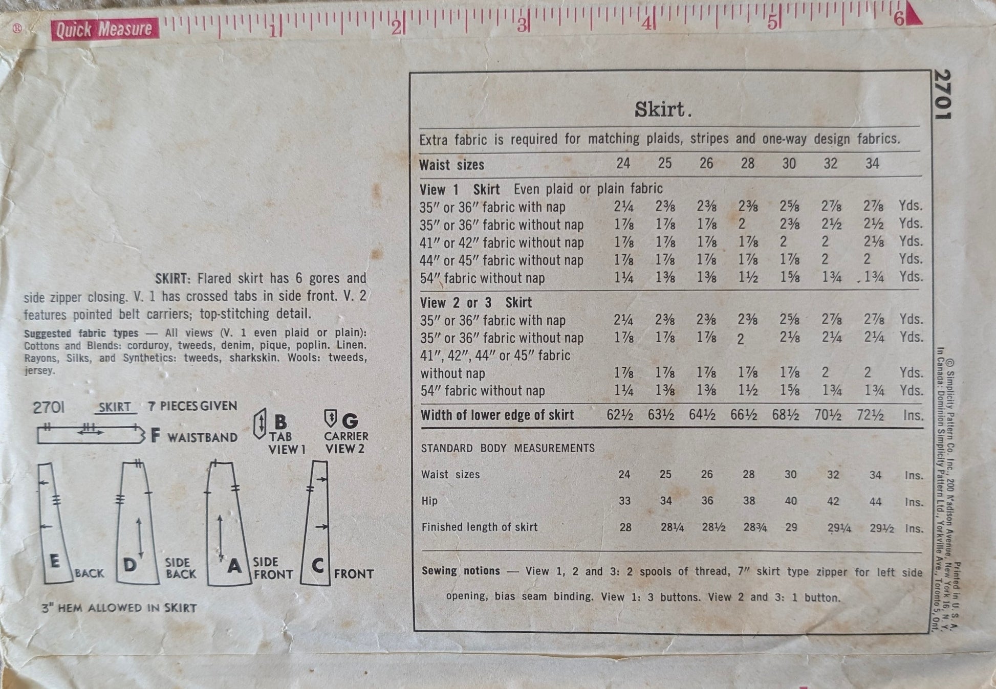 1950s Original Vintage Sewing Pattern: Simplicity 2701 Waist 30"