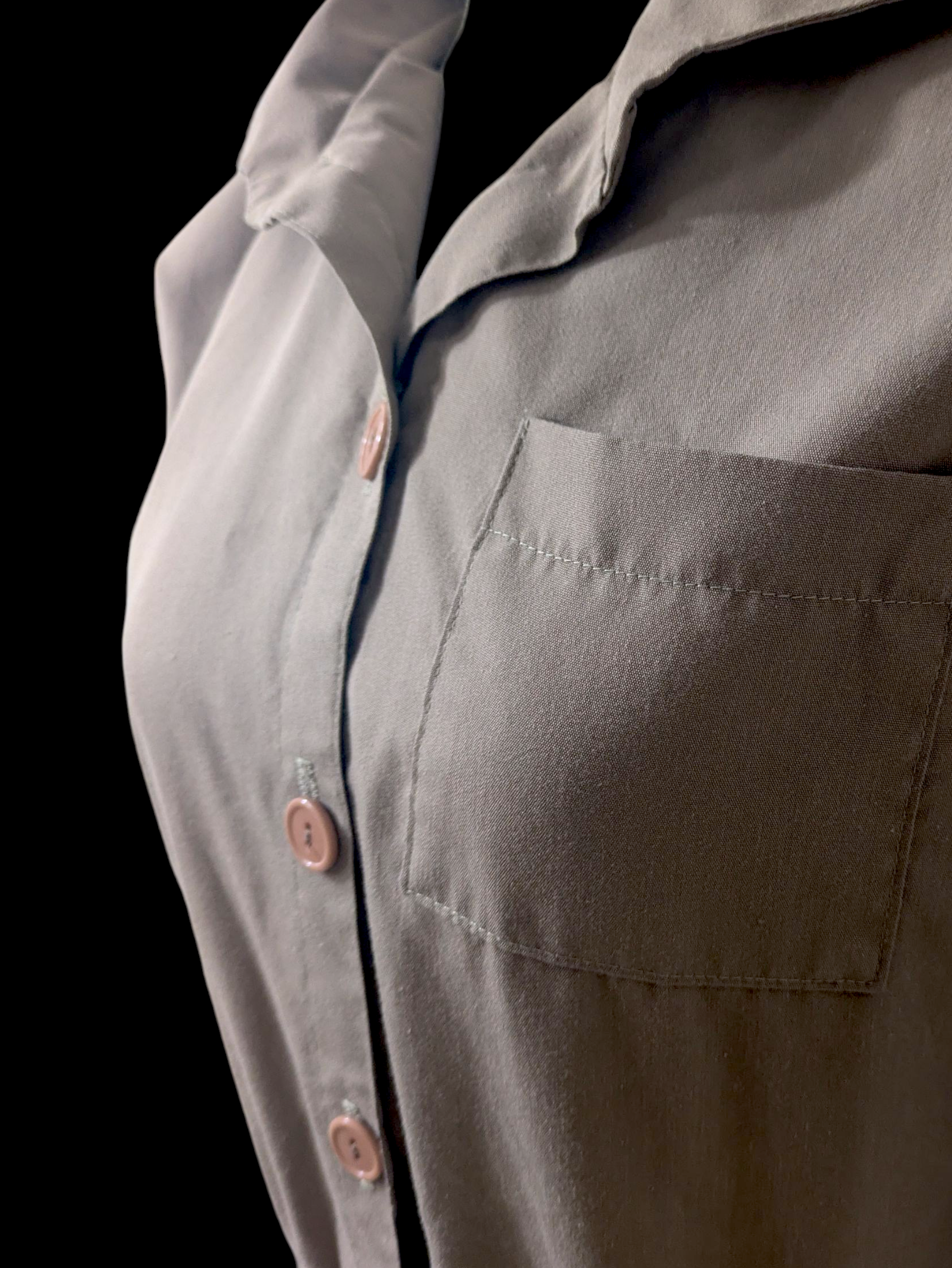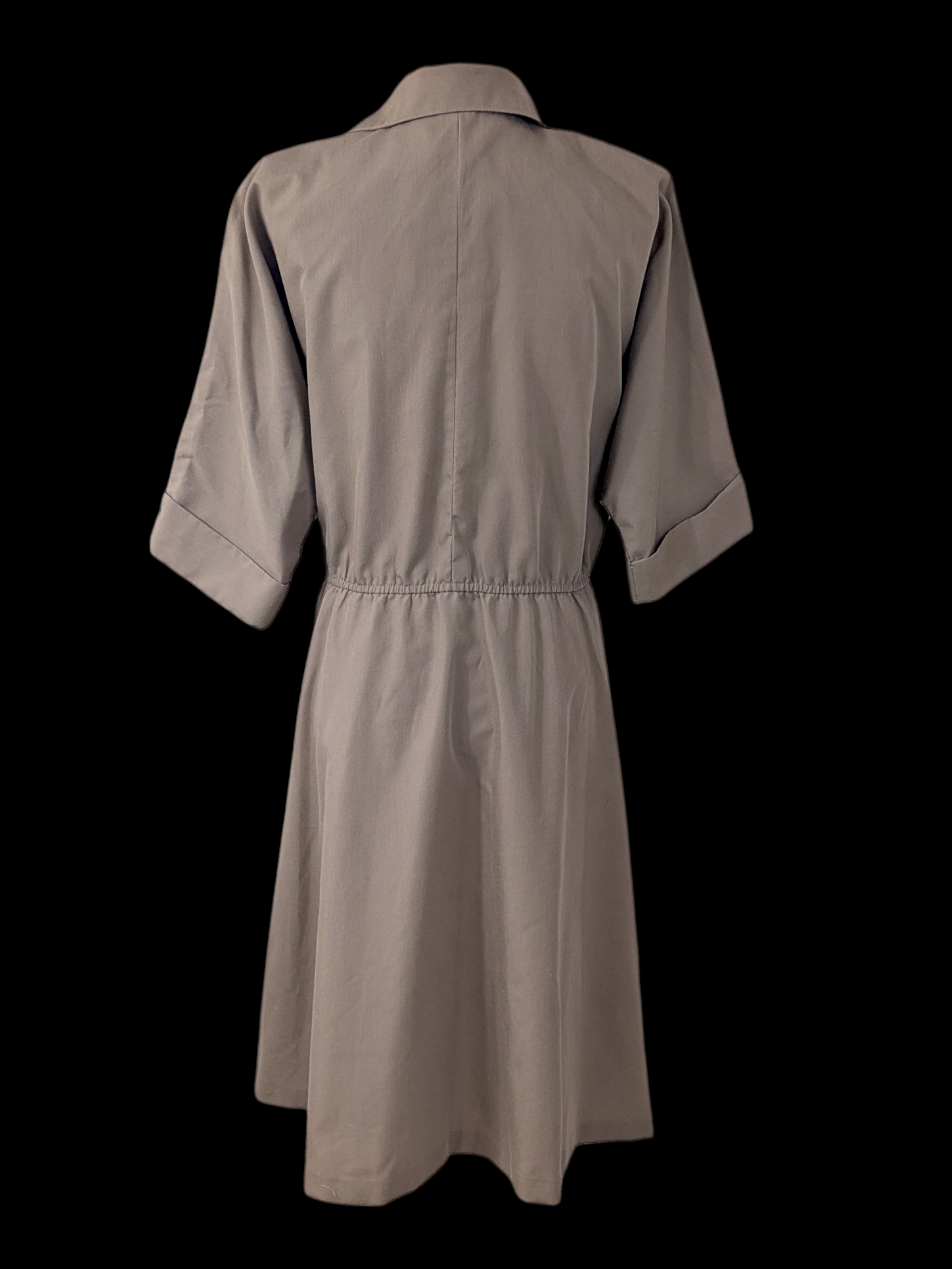 1980s Vintage Batwing Sandalwood Brown House Dress with Peach Acrylic Button Down, Elastic Waist and Cuffed Sleeves