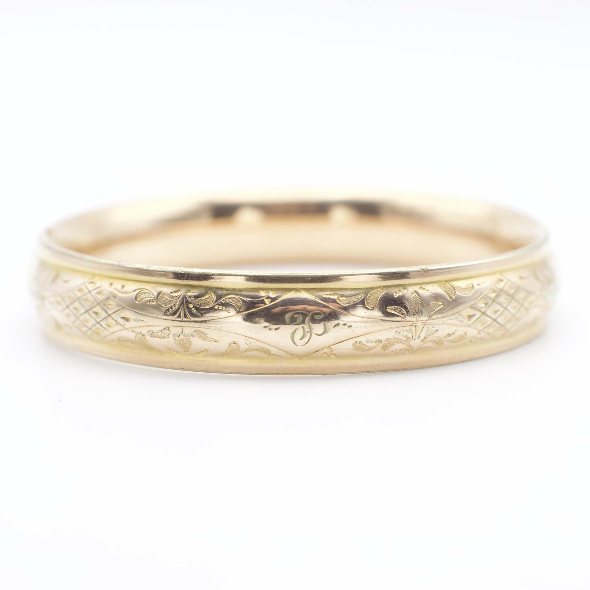 Circa 1900 Victorian 14K Gold Filled Etched CAMS Co Bangle Bracelet