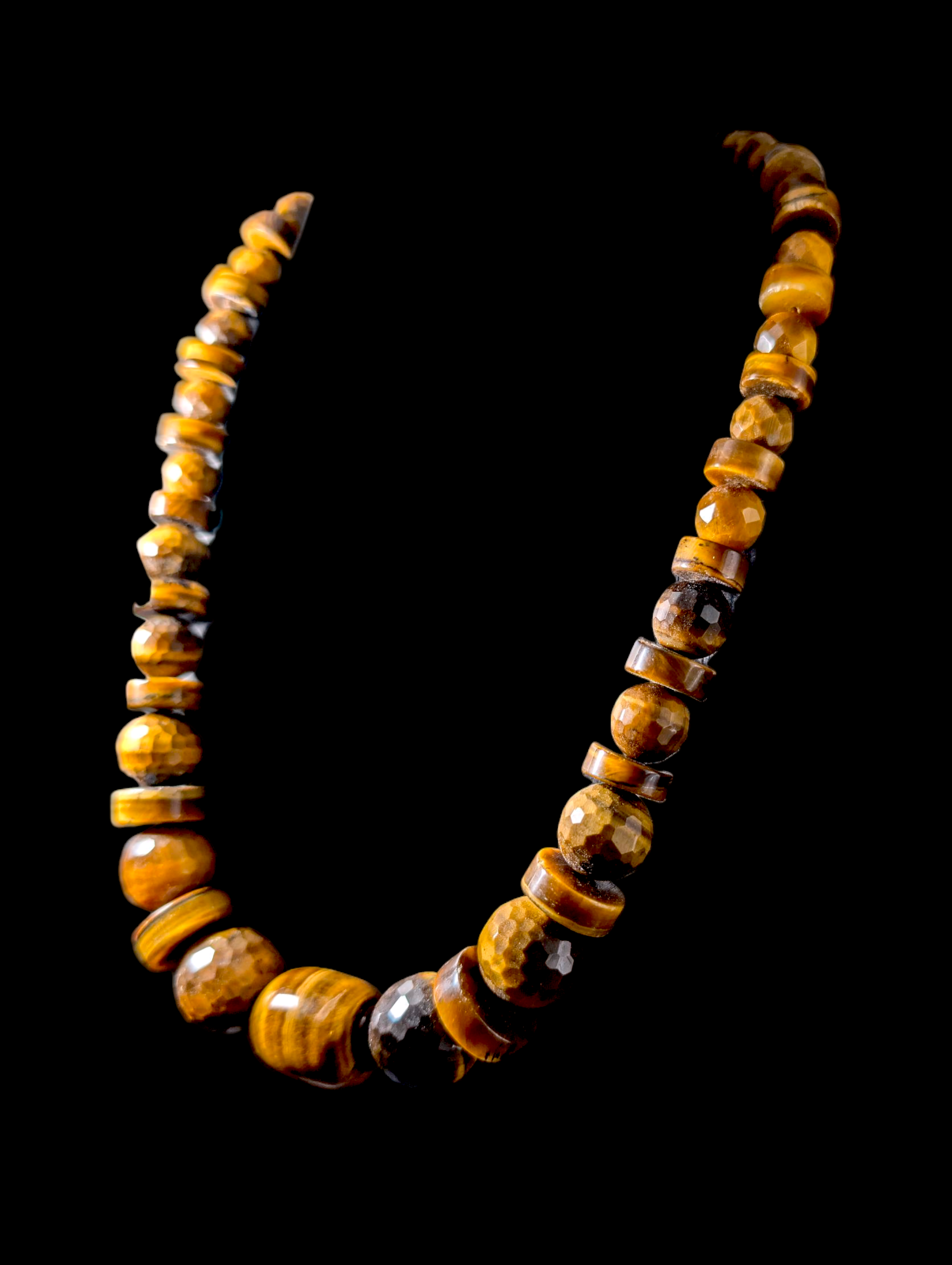 Vintage Designer Artesian Chunky Earth Mined Genuine Tiger's Eye Polished Beaded Sterling Silver Necklace
