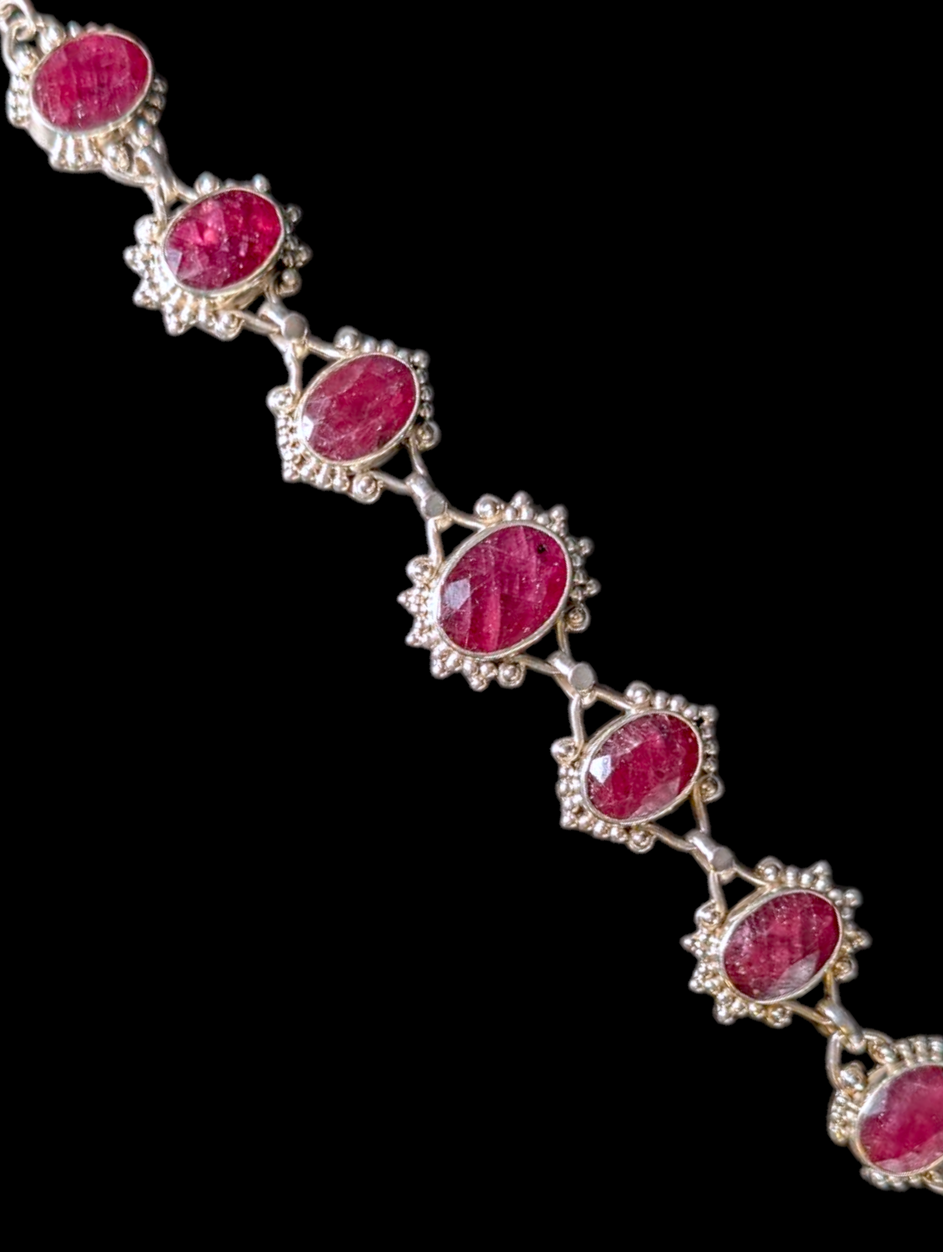 Vintage 50 Carat Artisan Oval Cut Genuine Earth Mined Ruby Sterling Silver Studded Toggle Bracelet