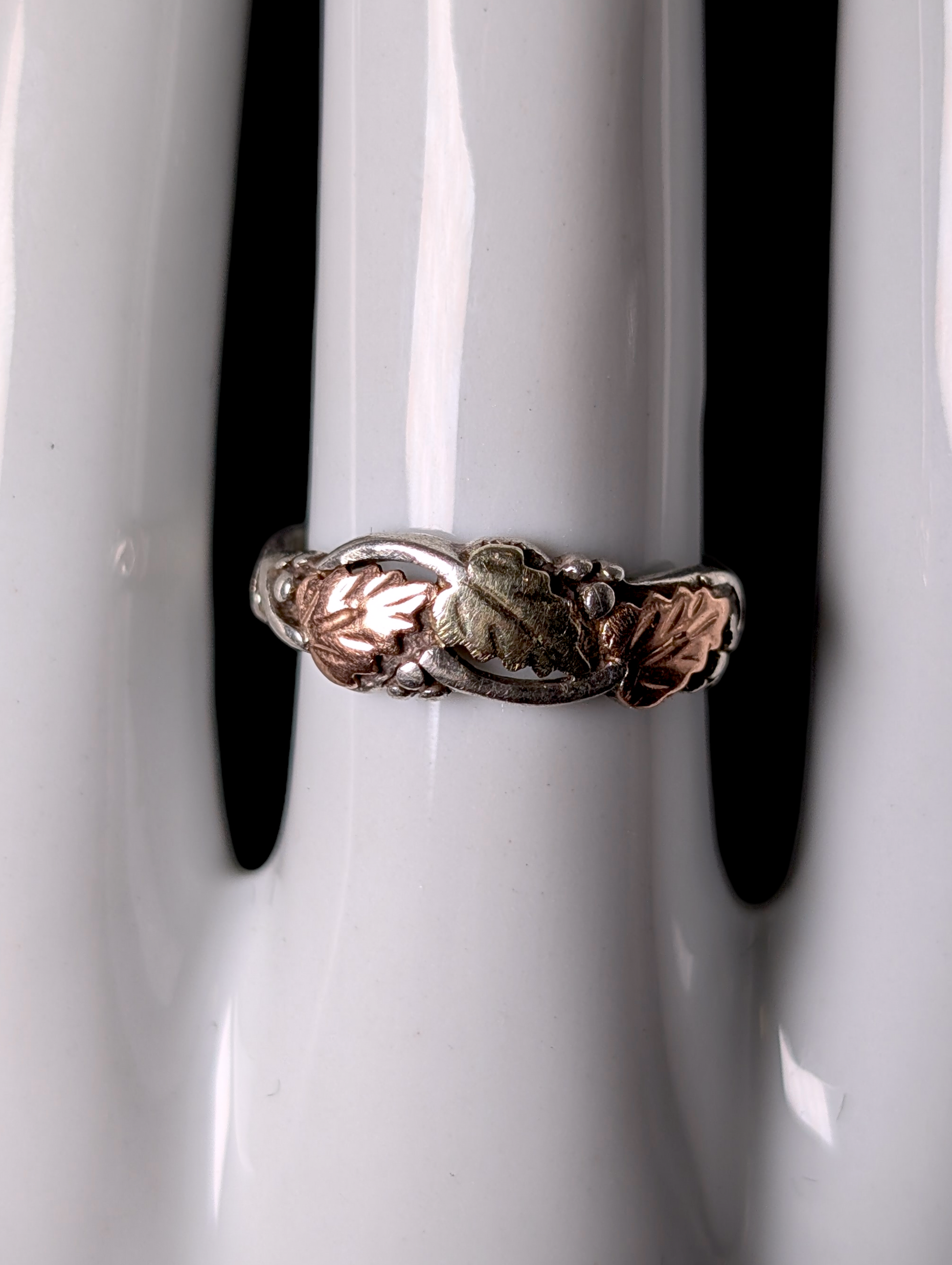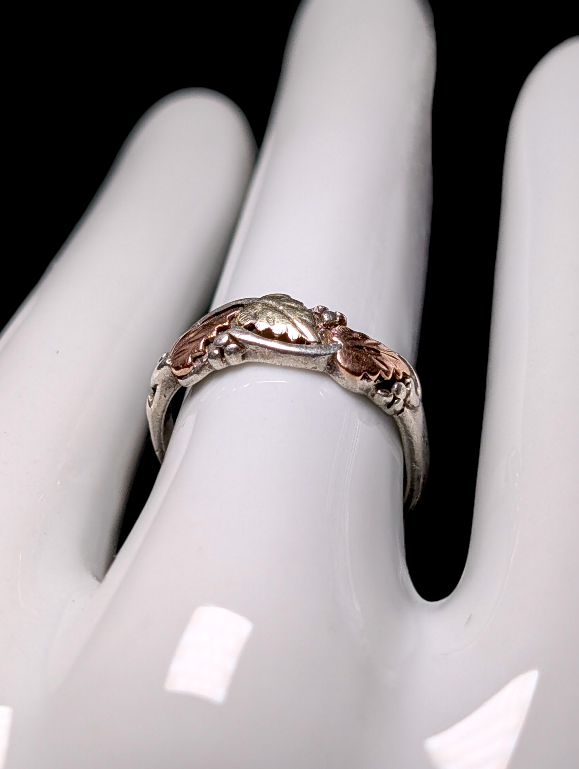 Vintage Black Hills 10k Gold Grape Leaf Trio and Sterling Silver Band Ring