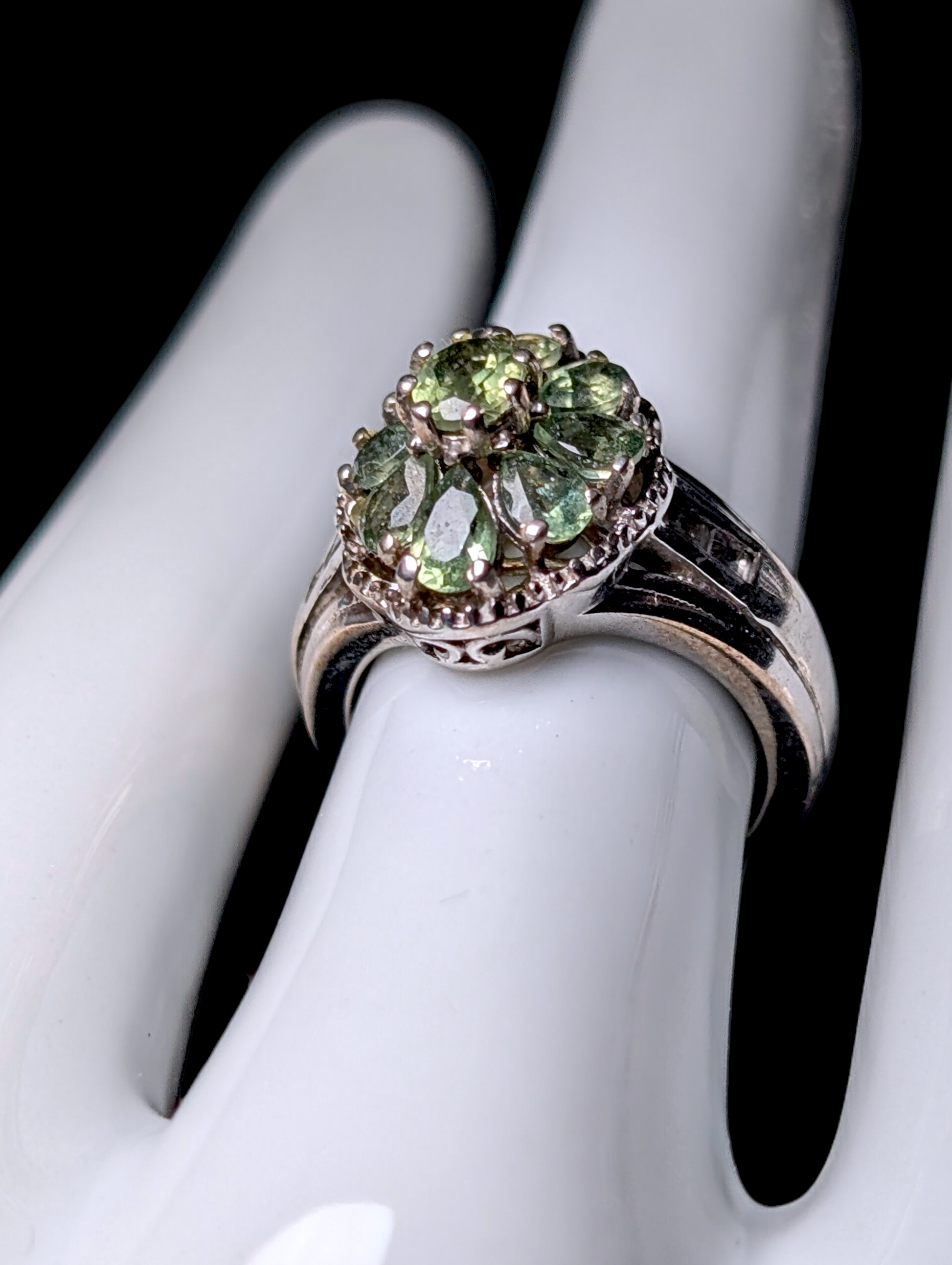Vintage Cluster Genuine Green Apatite with White Zircon Accent Stones Sterling Silver Ring