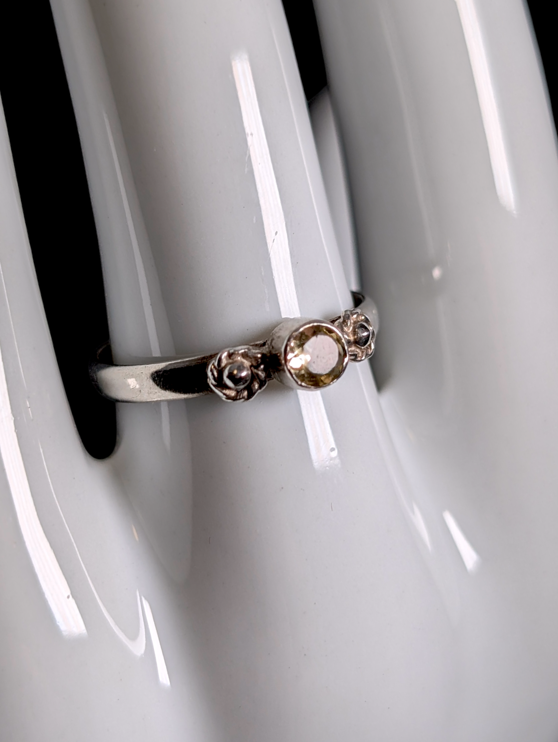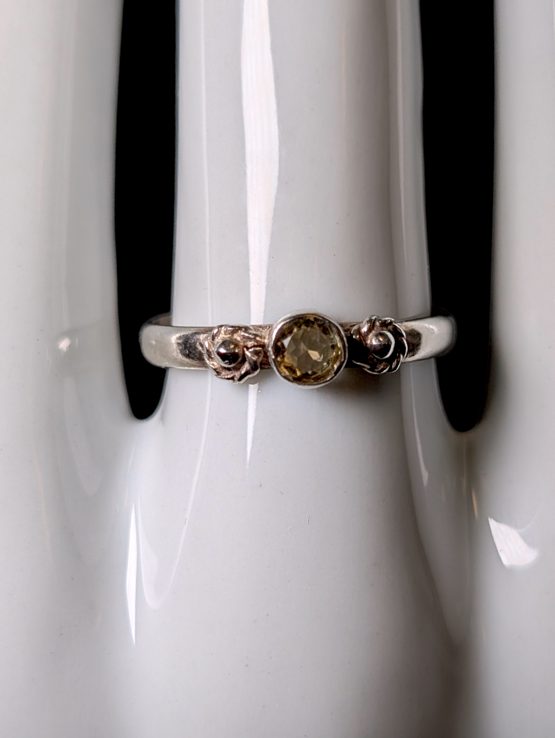 Vintage Dainty Cabochon Cut Genuine Pale Citrine Bezel Set Solitaire Sterling Silver Stackable Ring