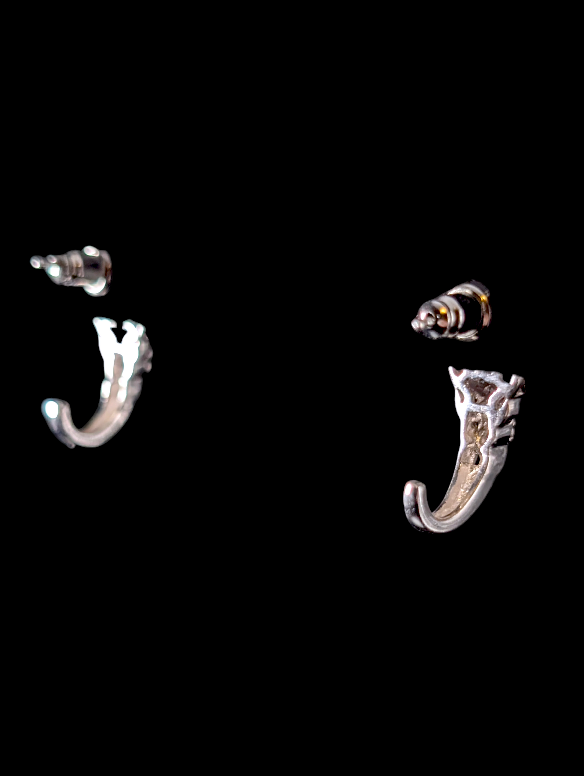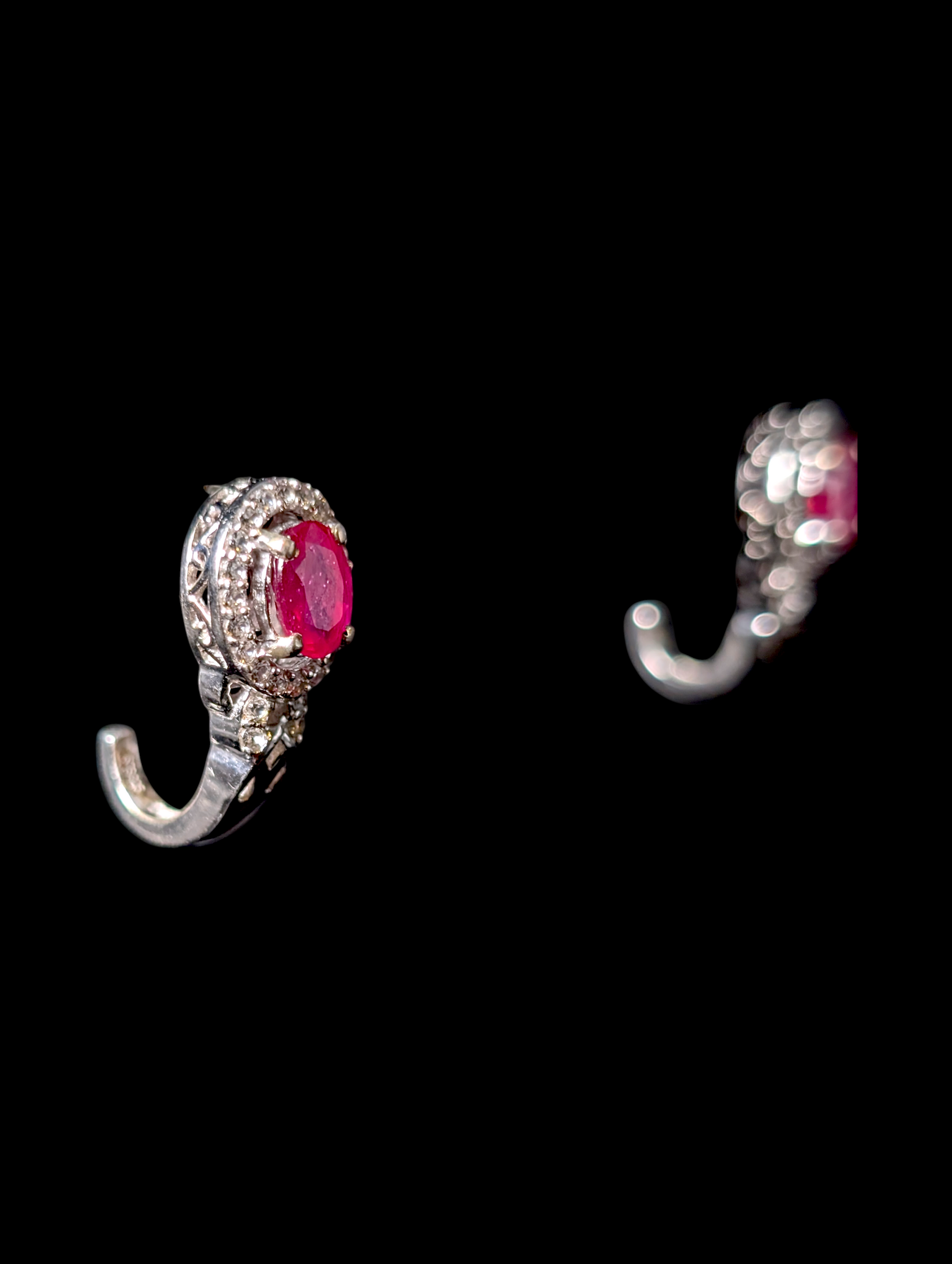Vintage Earth Mined Genuine Ruby and White Zircon Halo Huggie Post Sterling Silver Earrings
