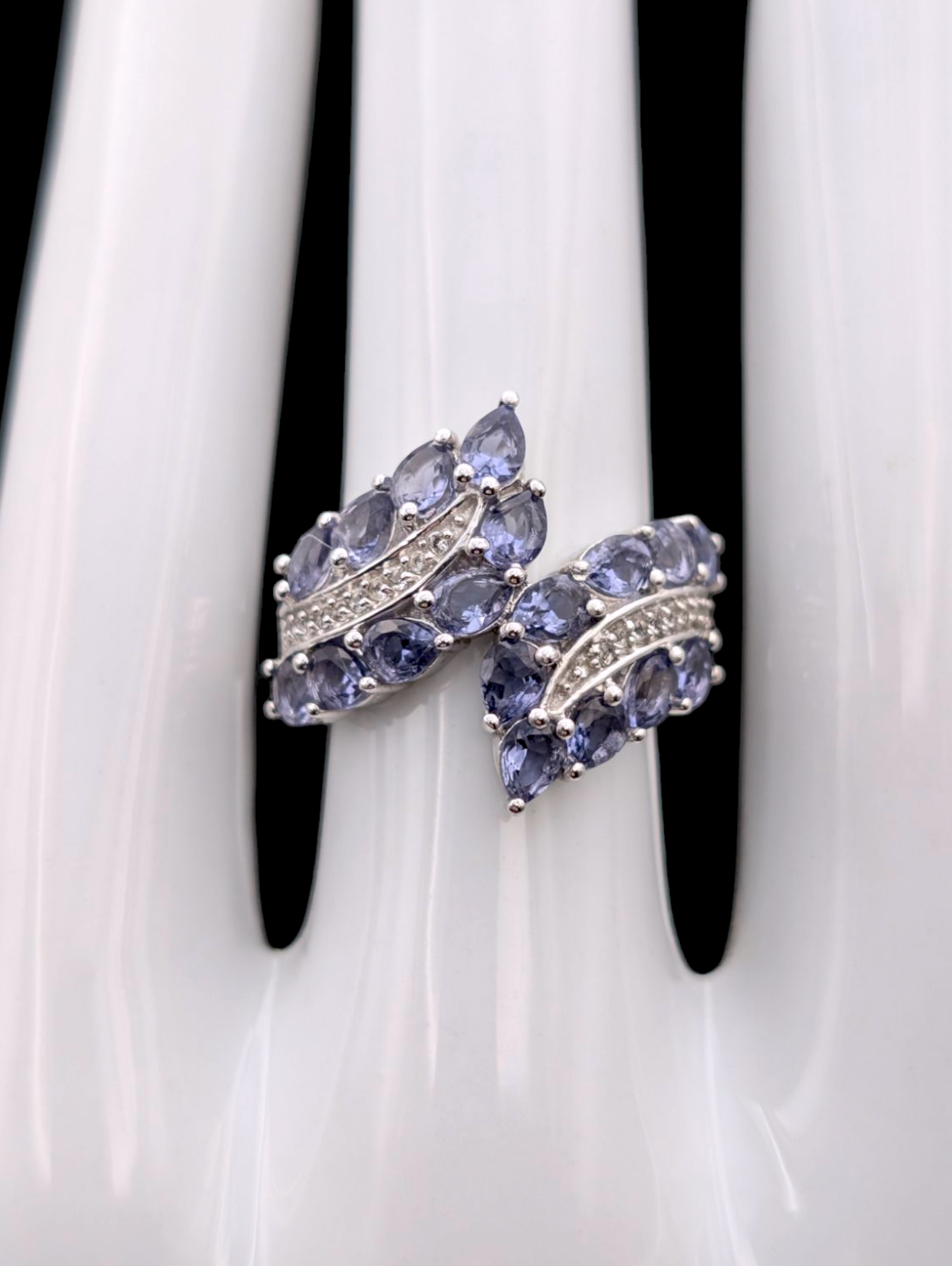 Vintage Earth Mined Genuine Tanzanite and White Zircon Sterling Silver Wrap Ring