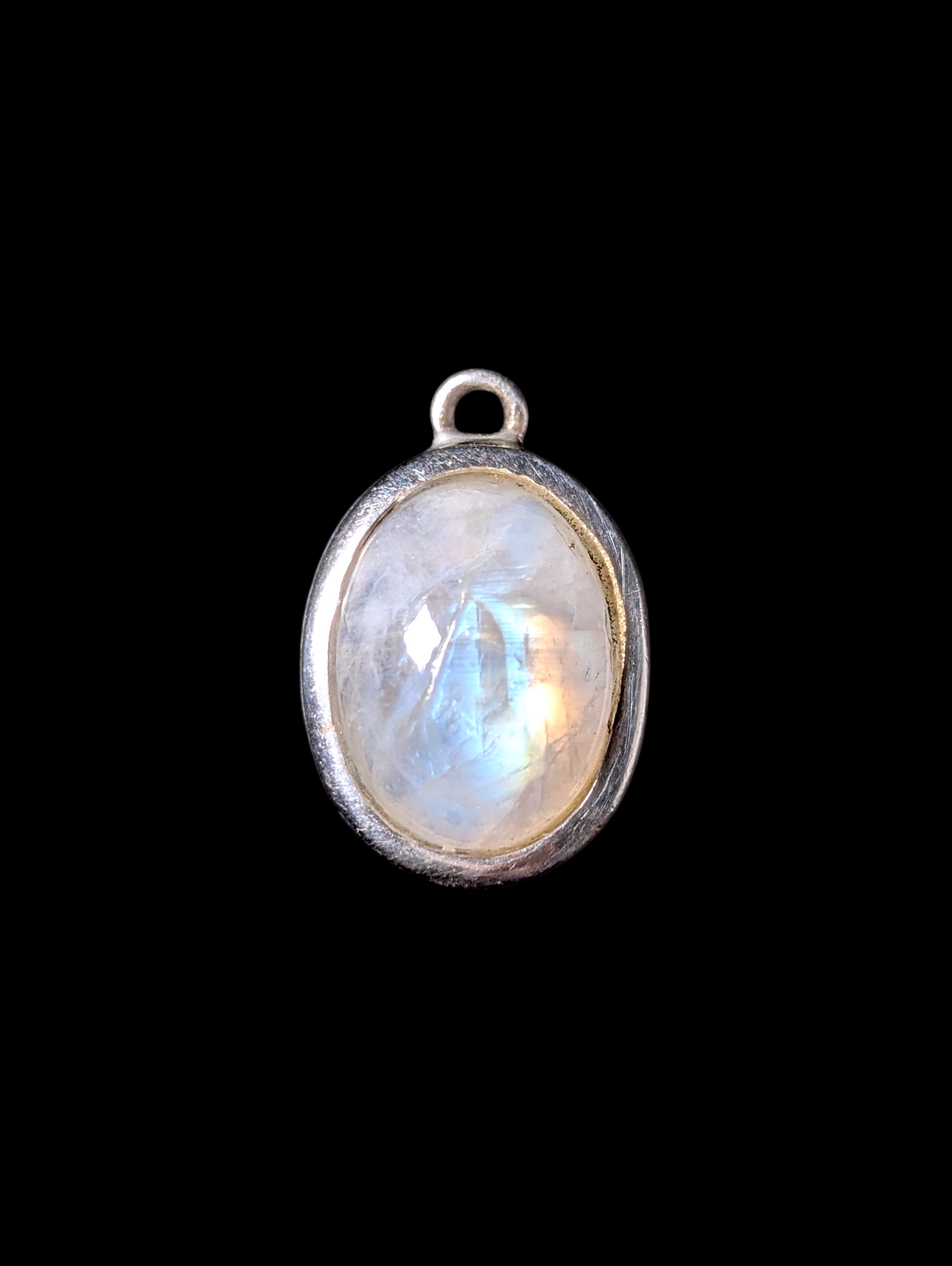 Vintage Genuine Moonstone Solitaire Cabochon Sterling Silver Pendant