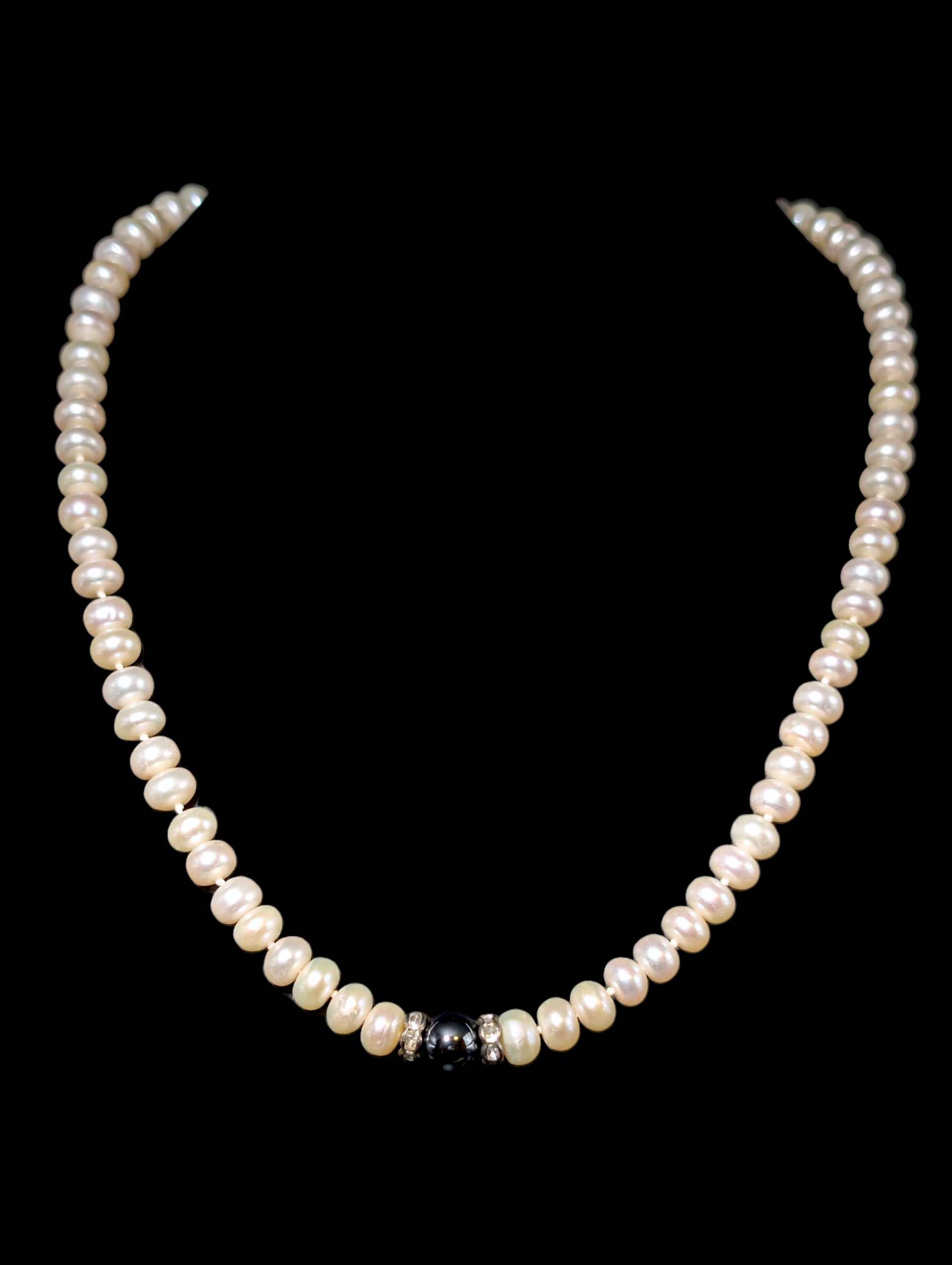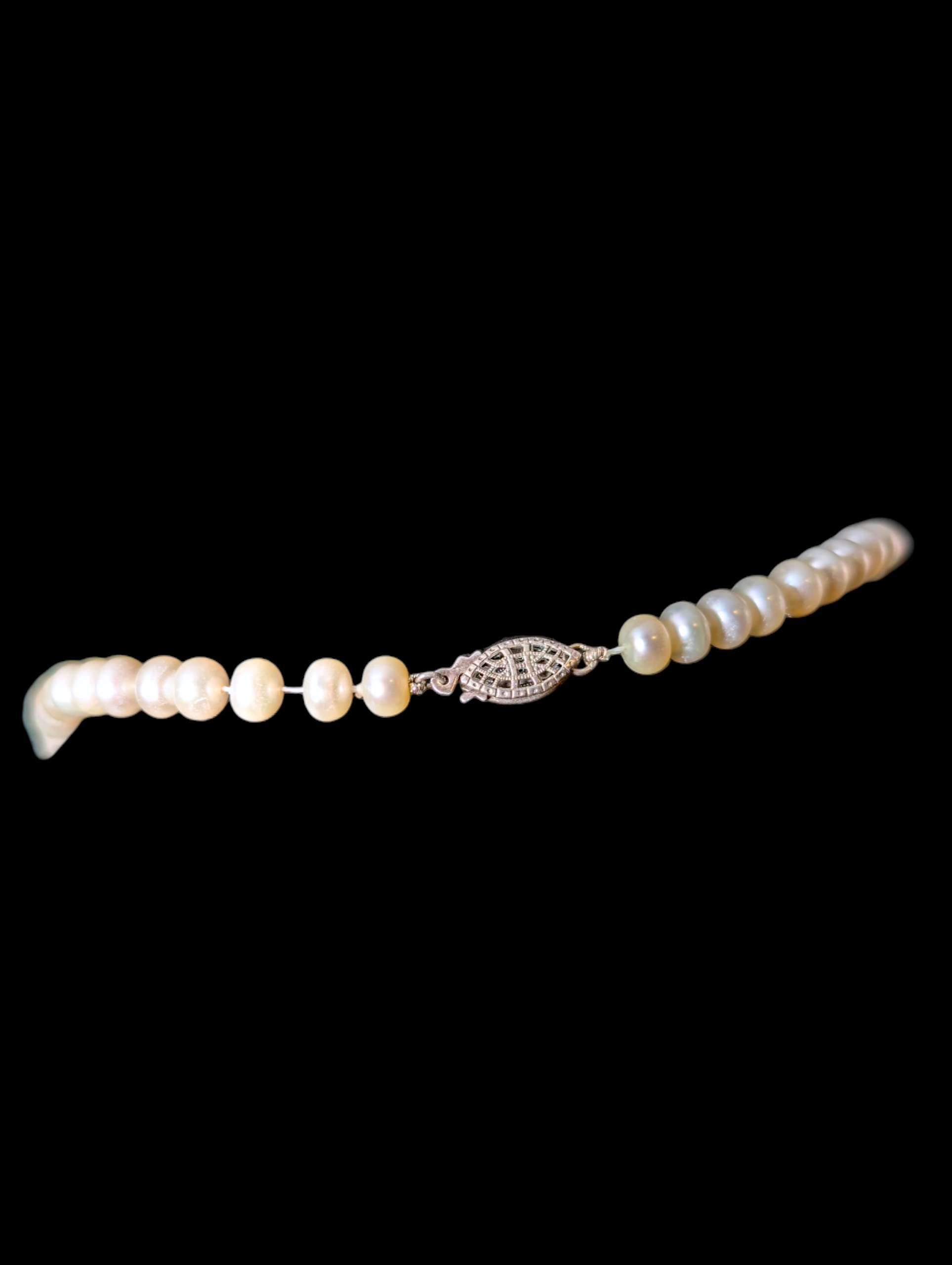Vintage Hand Knotted Genuine Cultured Freshwater Potato Shaped Pearl and Hematite Sterling Silver Necklace