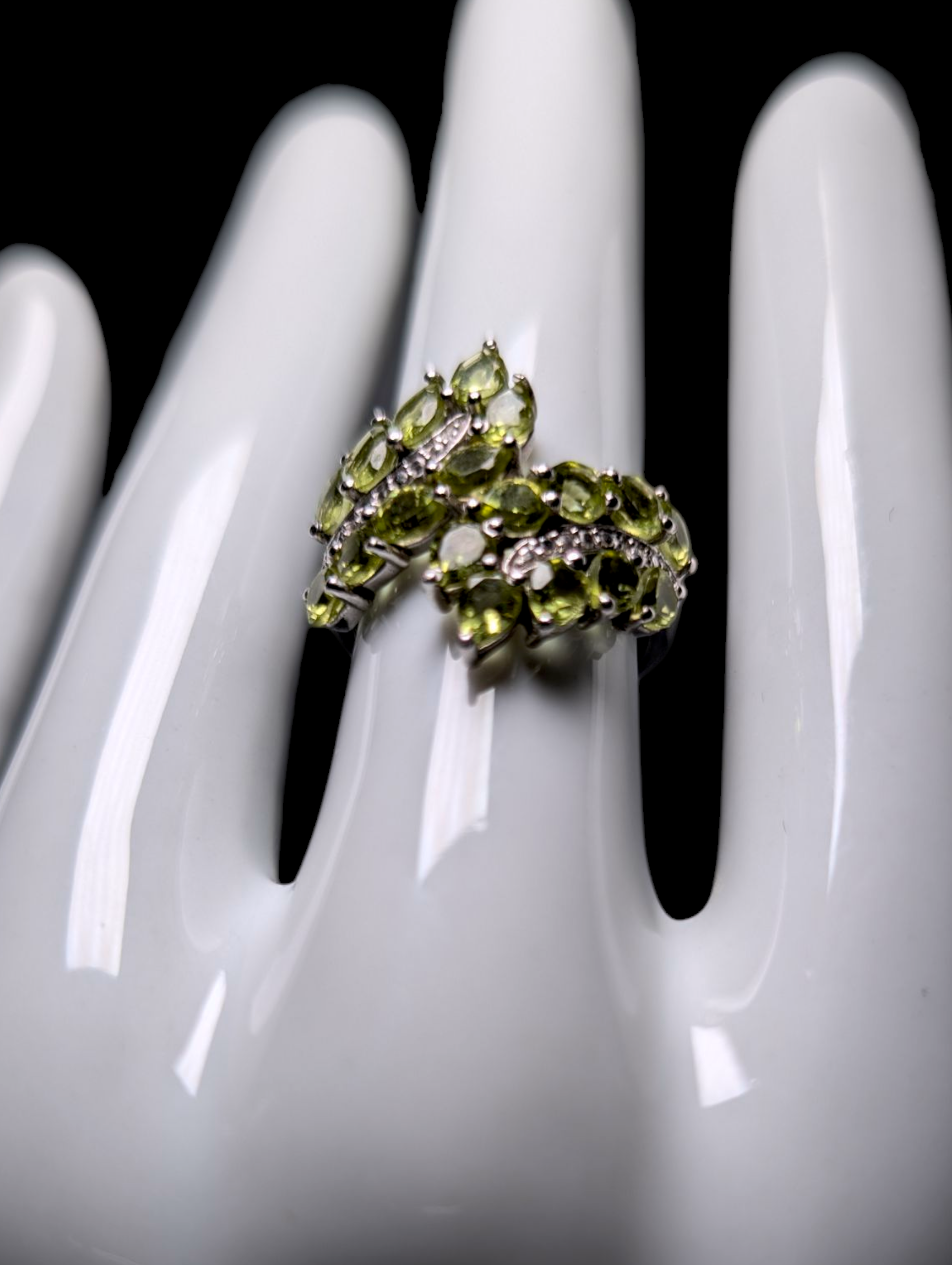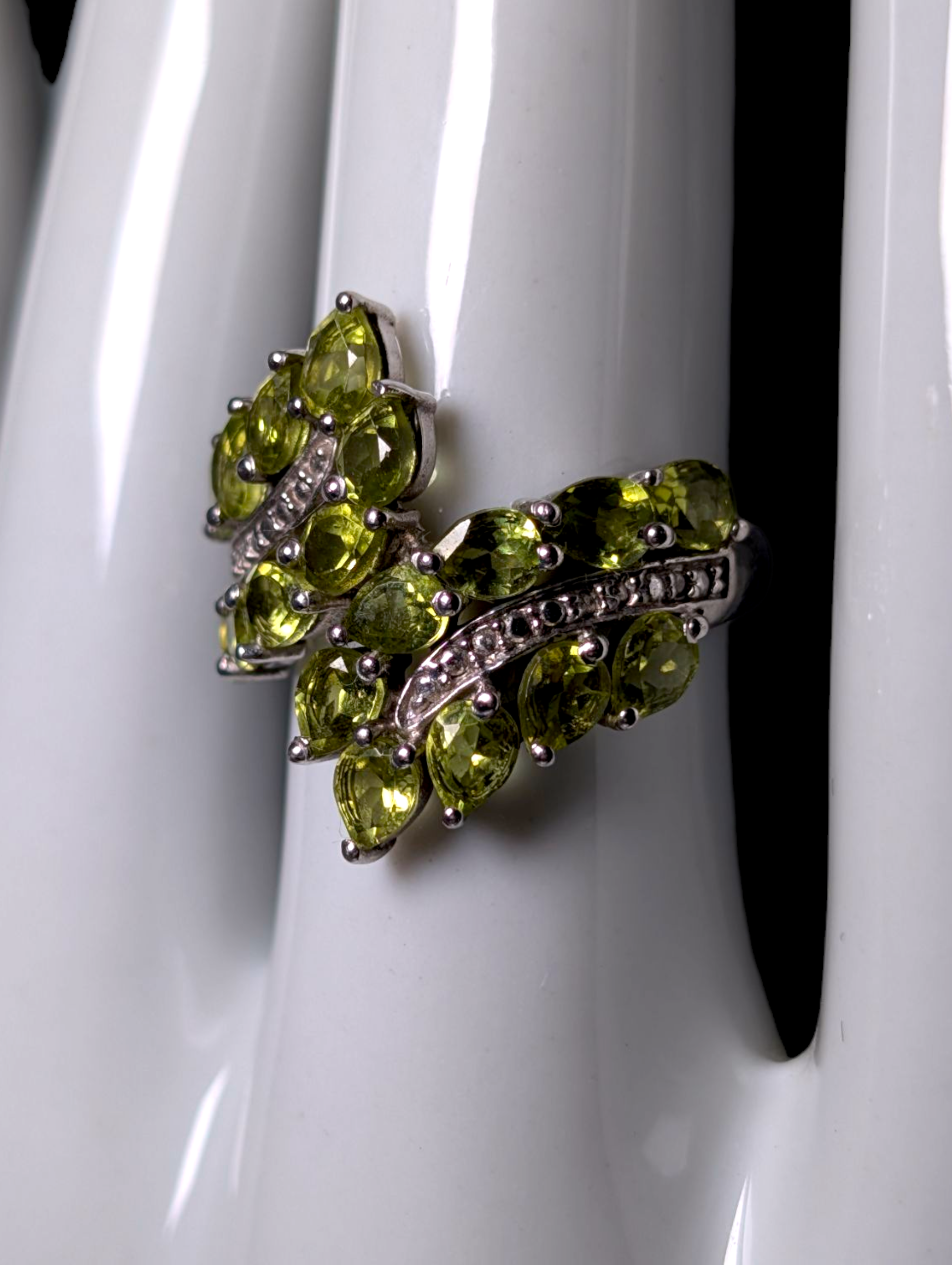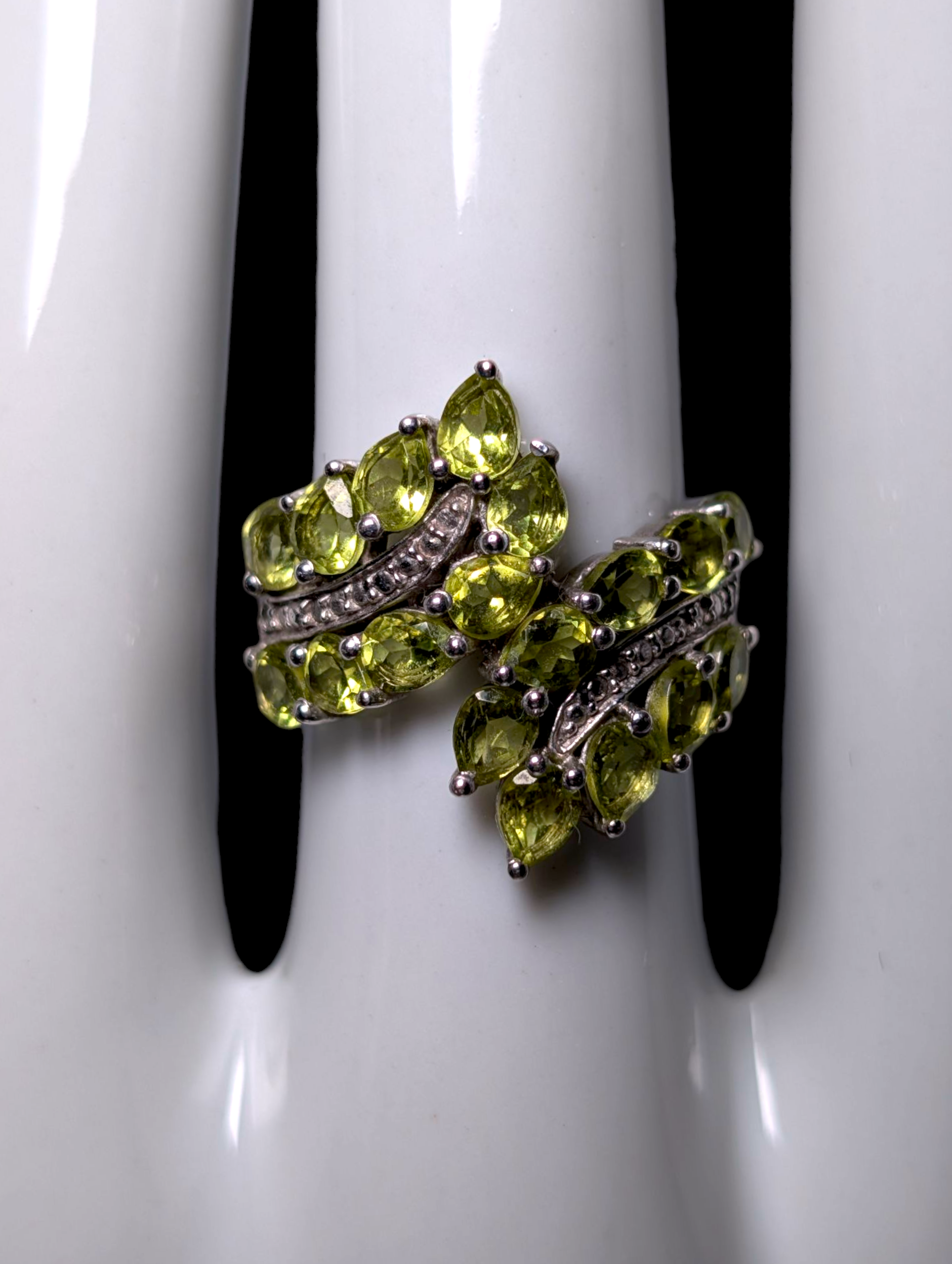 Vintage Genuine Peridot Feather Wrap Sterling Silver Ring