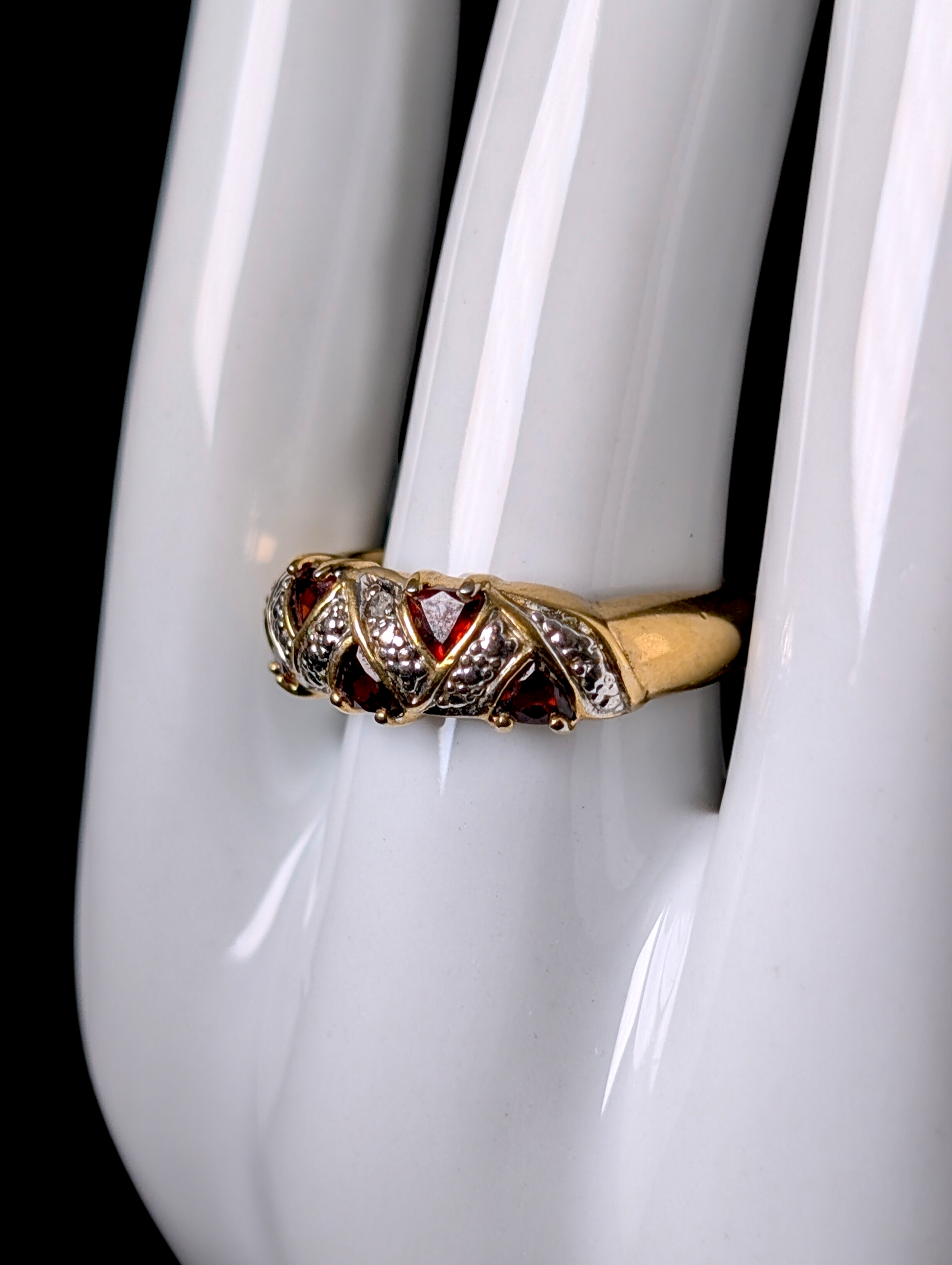 Vintage Genuine Red Garnet and Diamond 14k Yellow Gold over Sterling ZigZag Ring