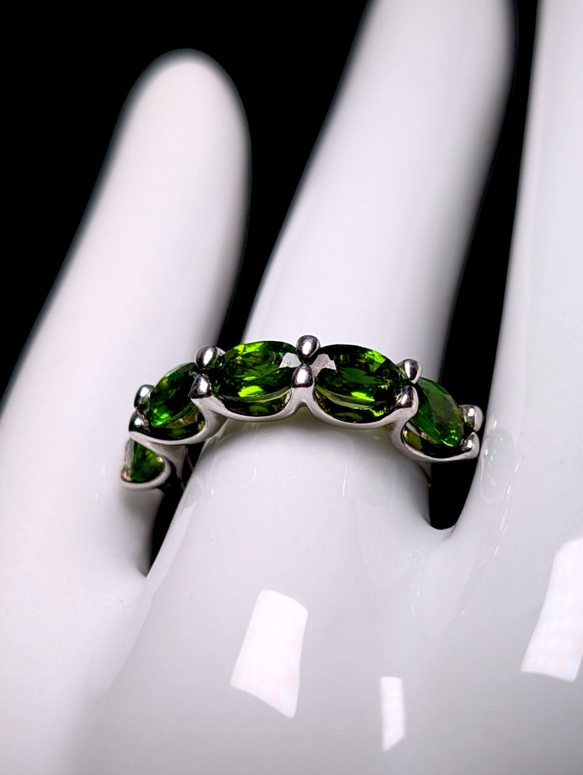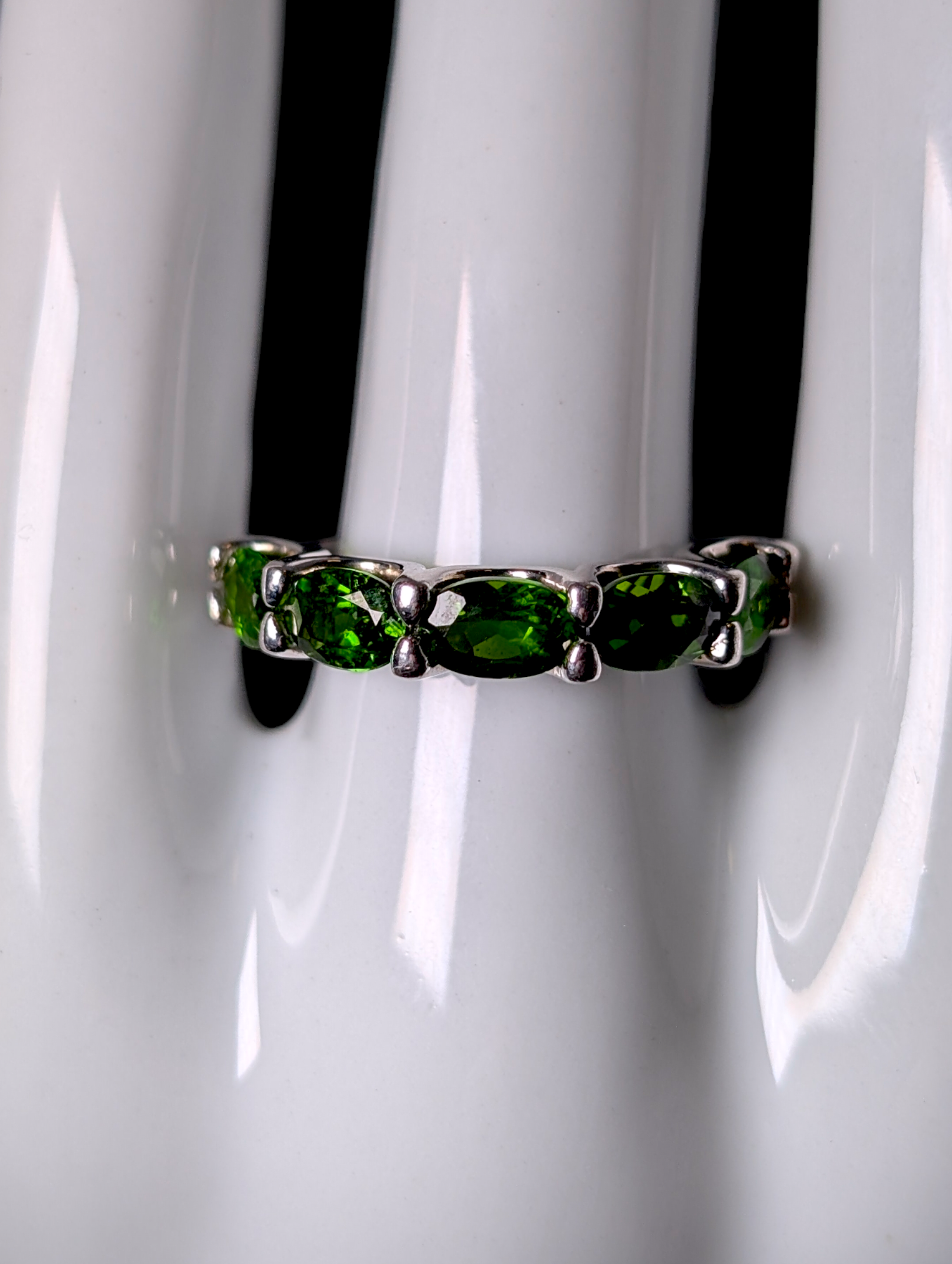 Vintage Half Eternity Band Oval Cut Earth Mined Genuine Emerald Green Chrome Diopside Sterling Silver Ring