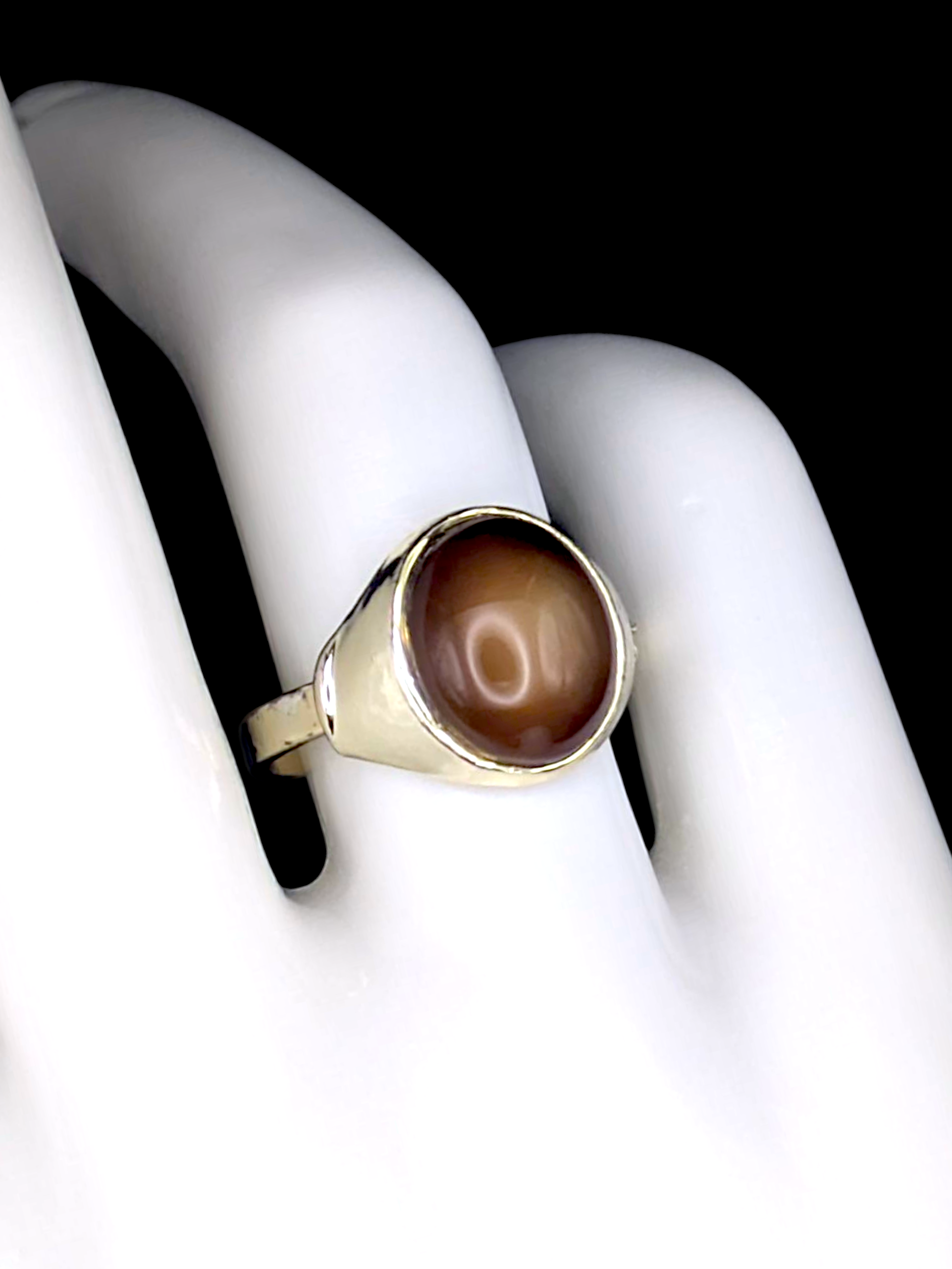 Vintage Oval Cabochon Simulated Tigers Eye Gold Toned Adjustable Ring