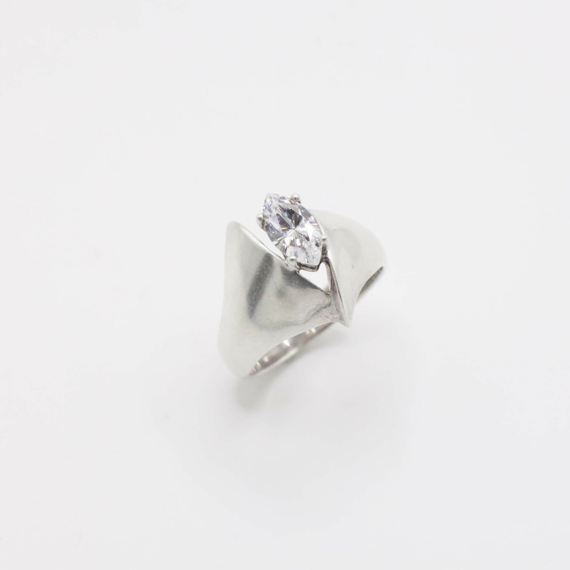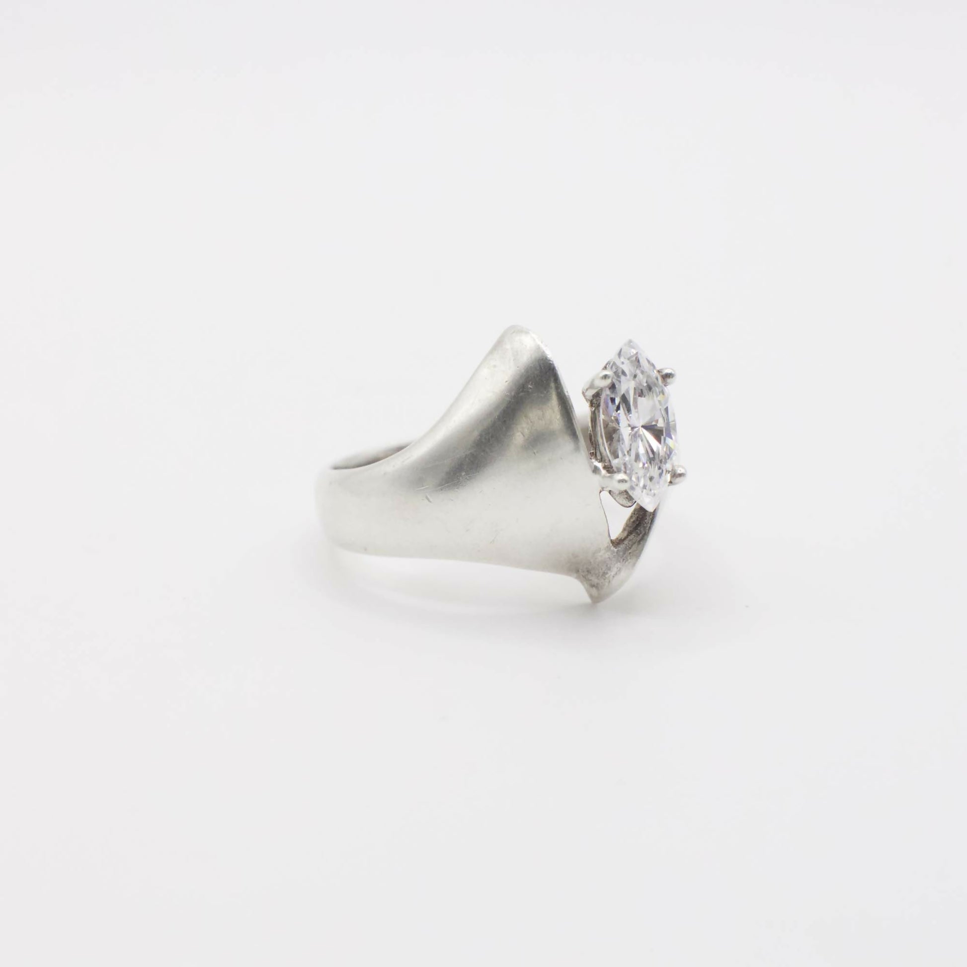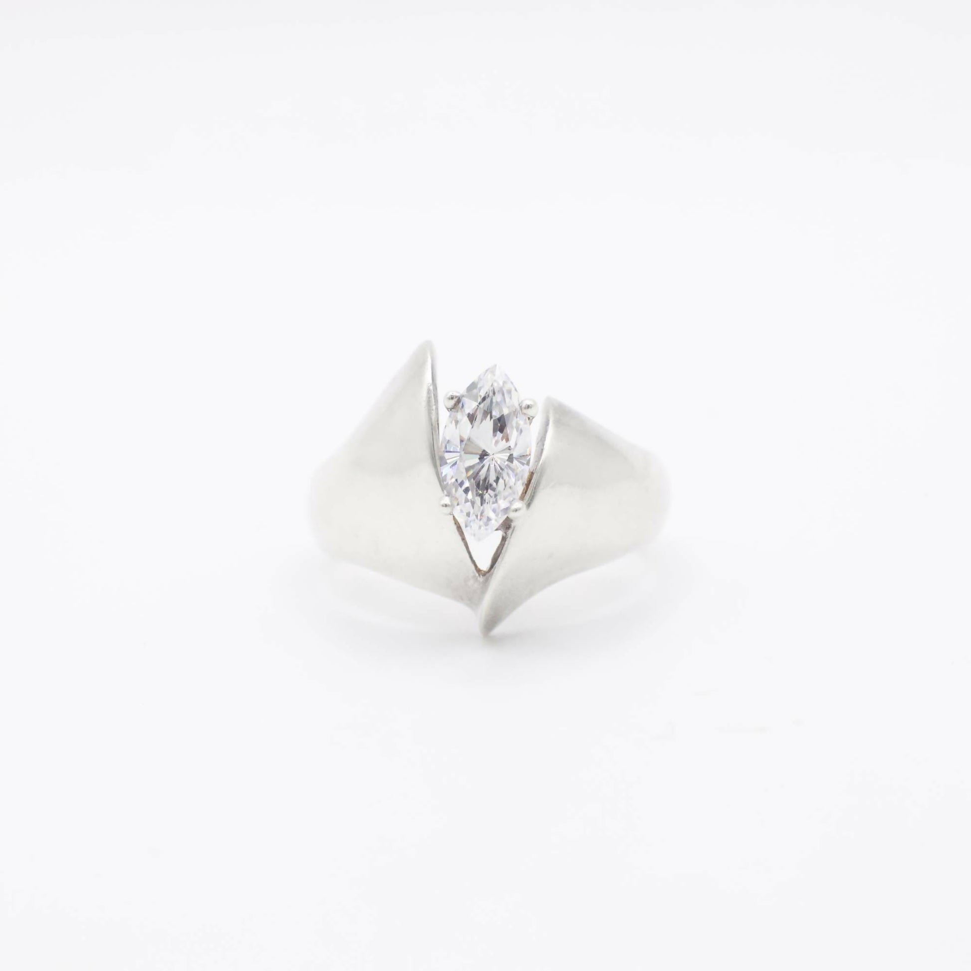 Vintage Marquis Simulated Diamond Ring In Sterling Silver