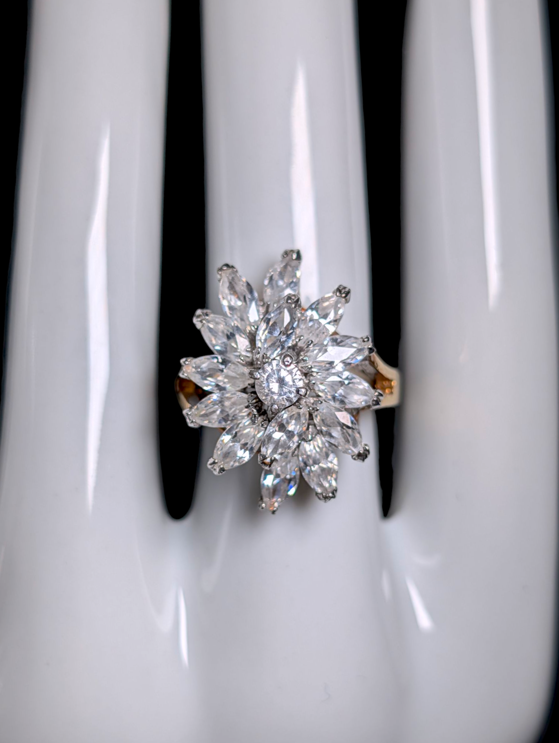 Vintage Marquise Cut Simulated Diamond Cluster Starburst 14K Yellow Gold Vermeil Cocktail Statement Ring