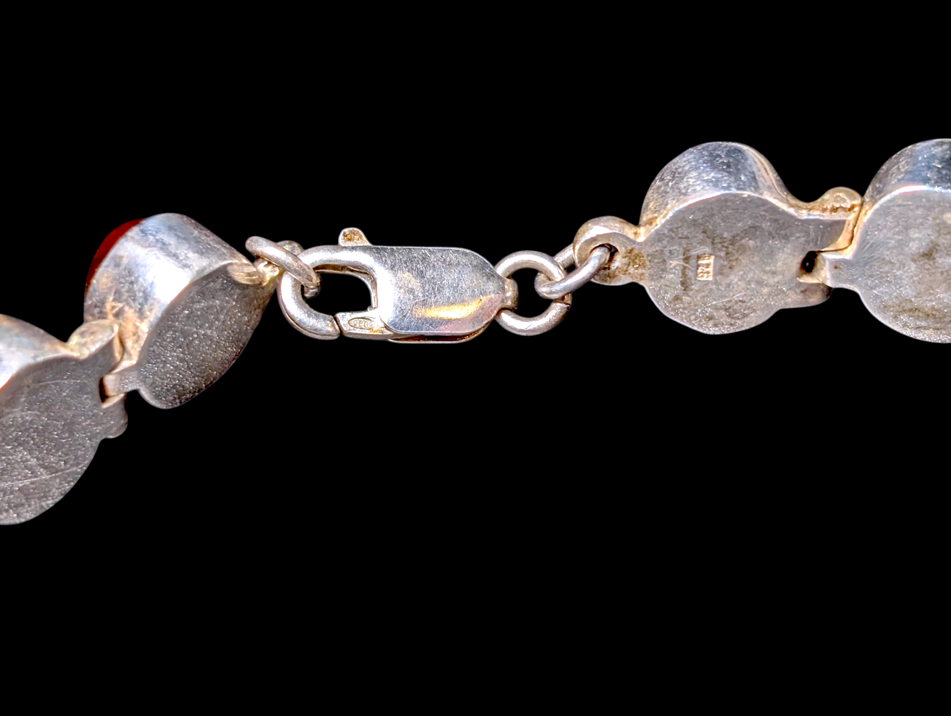 Vintage Oval Cut Cabochon Bezel Set Genuine Baltic Honey Amber Sterling Silver Tennis Bracelet