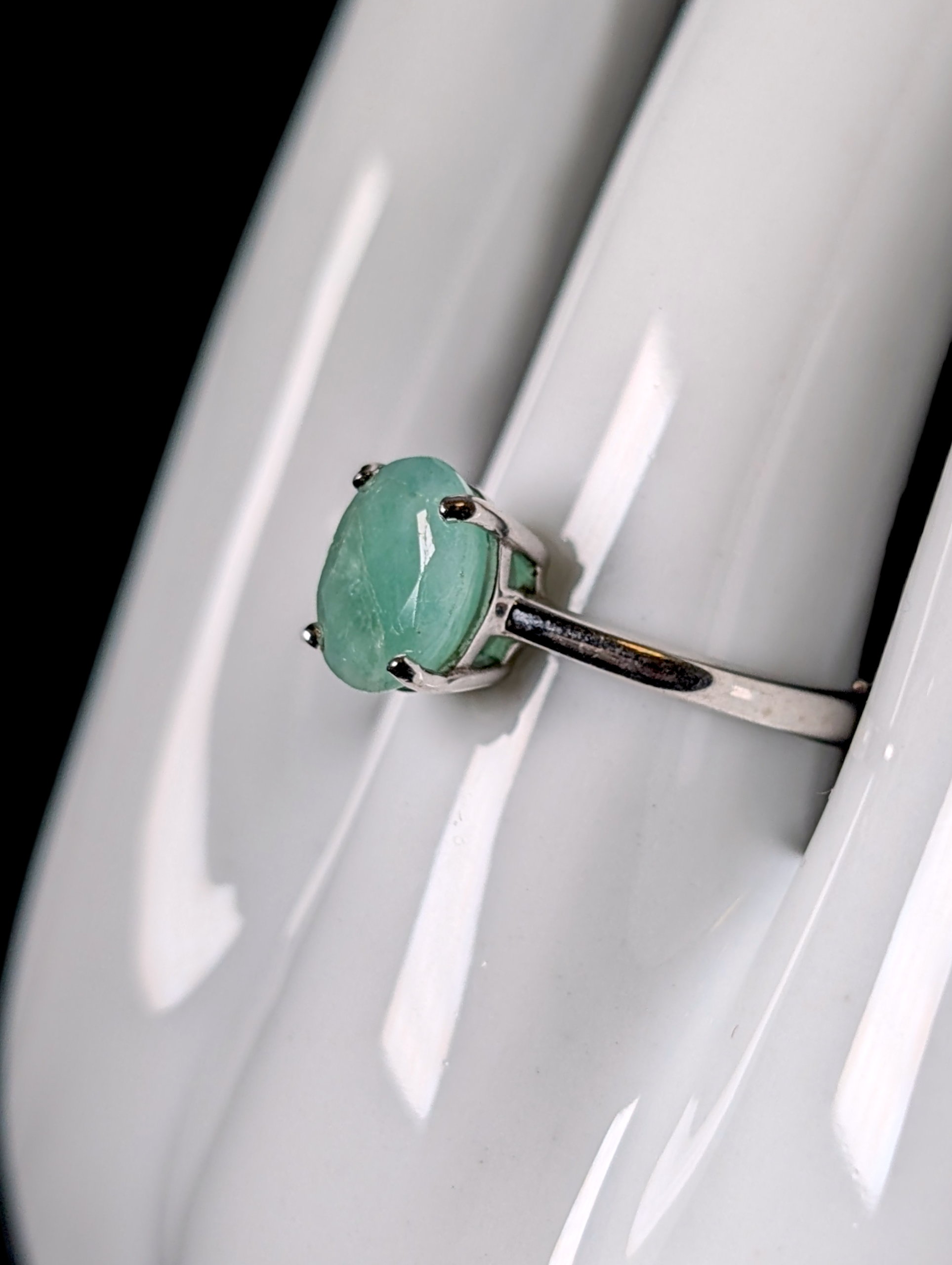 Vintage Oval Cut Earth Mined Genuine Emerald Solitaire Sterling Silver Ring