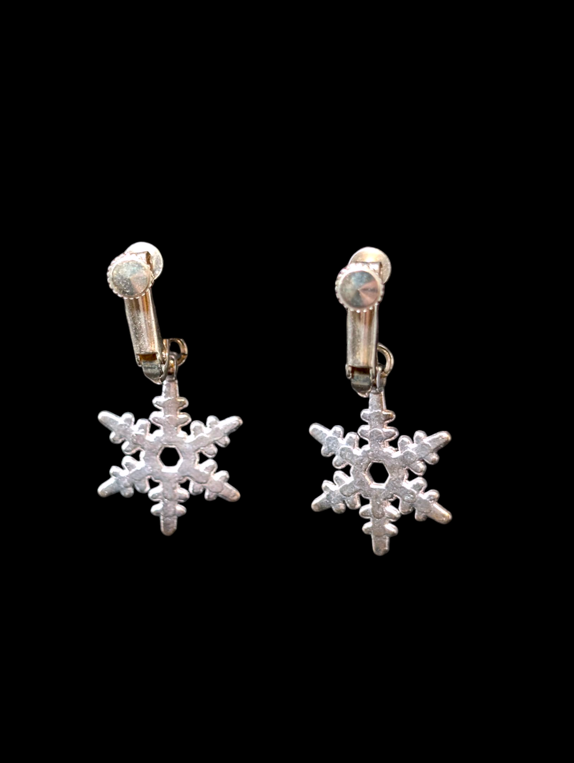 Vintage Snowflake Dangle Silver Toned Screwback Earrings