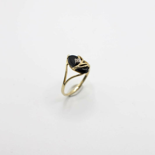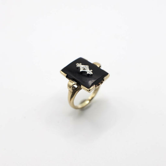 Vintage Genuine Diamond and Onyx Ring In 10K Yellow Gold