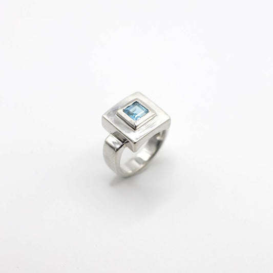 Vintage Genuine White Topaz and Sterling Silver Contour Band Ring