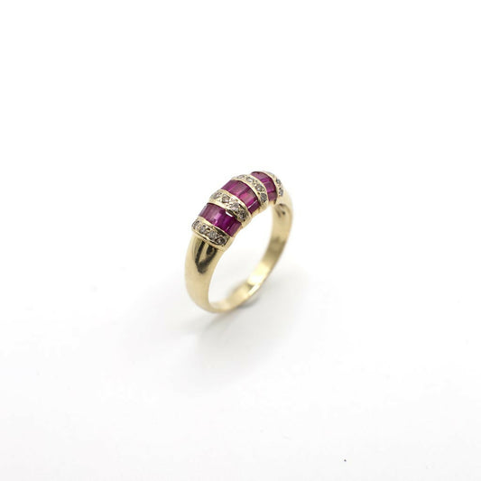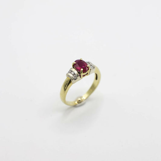Vintage Genuine Diamond and Ruby Ring in 18K Yellow Gold