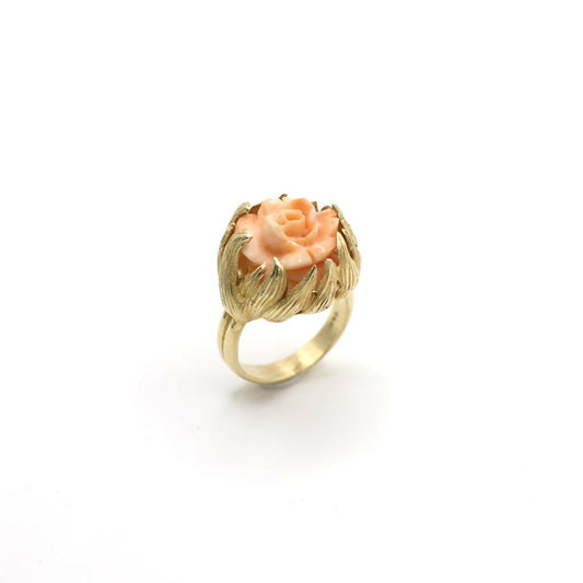 Vintage Genuine Carved Coral and 14K Gold Cocktail Ring