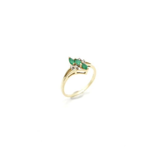 Estate Vintage Genuine Diamond and Emerald Bypass Shank Ring In 14K Plumb Yellow Gold