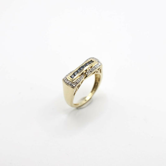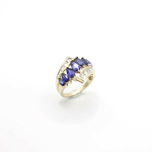 Vintage Genuine Diamond and Simulated Sapphire Ring In 10K Yellow Gold
