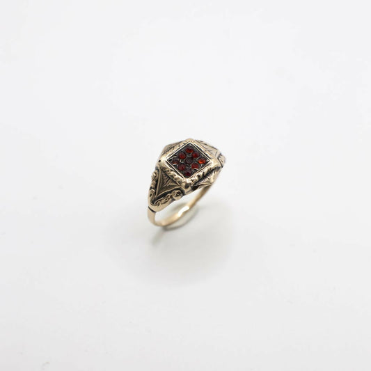Vintage Genuine Diamond and Garnet Ring In 14K Yellow Gold