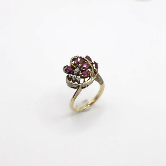 Vintage Genuine Ruby and 14K Yellow Gold Cluster Cocktail Ring