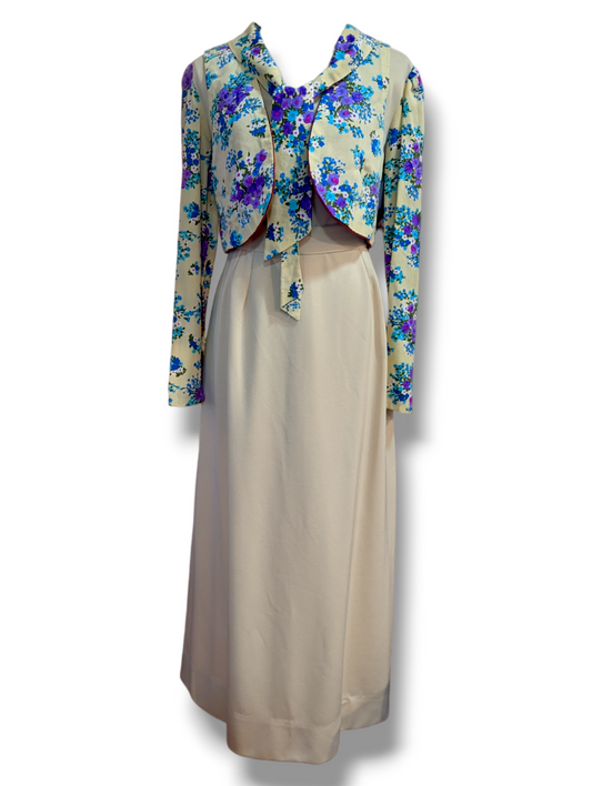 1970s 3 Piece Matching Tan and Floral Blouse, Skirt and Reversible Vest with Pockets!
