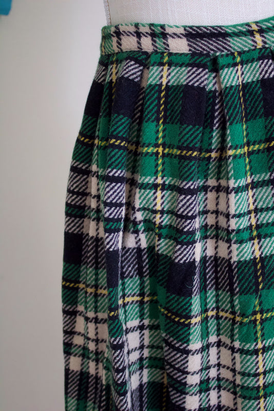 1970s Tartan Wool Skirt in Red, Blue and Olive Green