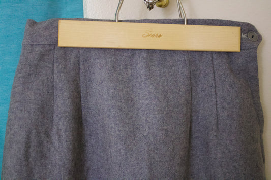 1960s Soft Gray Wool Skirt with Side Button and Zipper Fastener