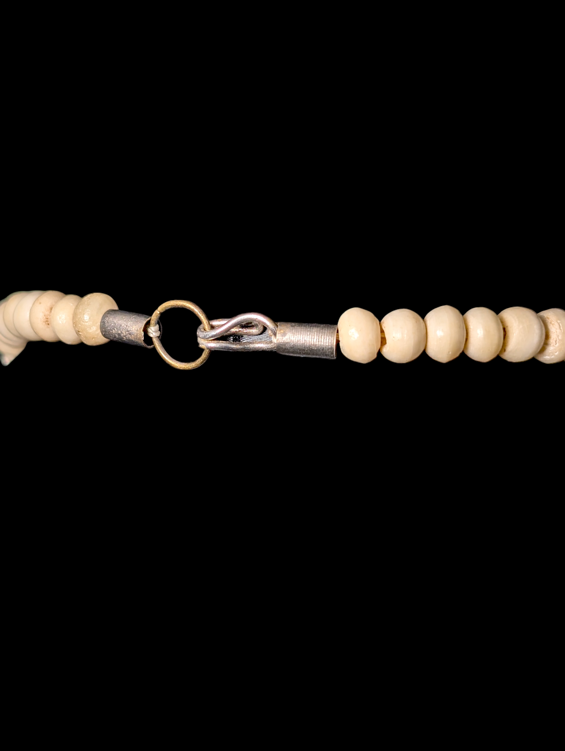 Vintage Genuine Carnelian and Carved Ivory Bone Elephant Silver Toned Tribal Necklace