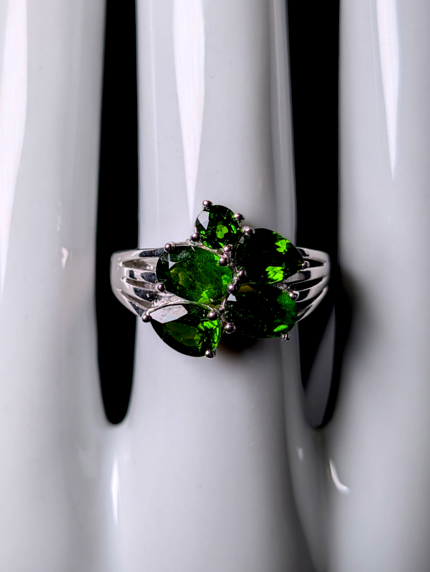 Vintage Multi-Cut Emerald Green Genuine Chrome Diopside Sterling Silver Split Shank Designer Ring