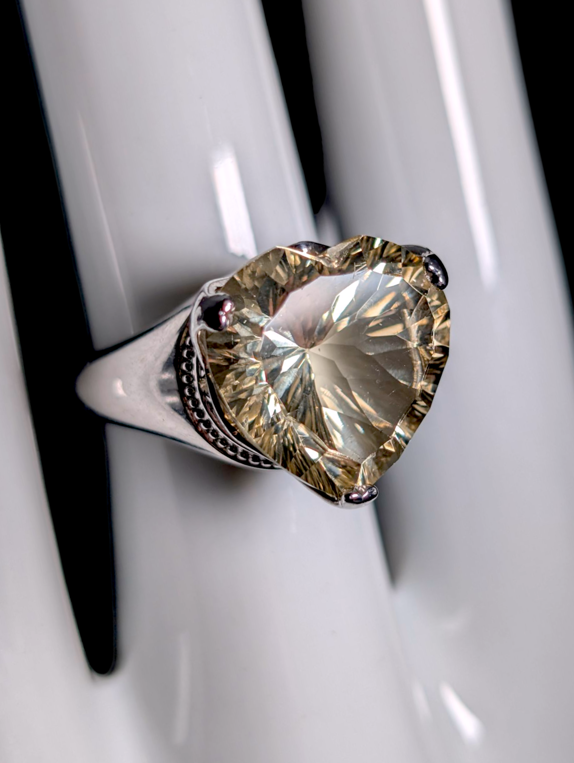 Vintage Heart Cut Genuine Yellow Labradorite Solitaire Sterling Silver Statement Ring